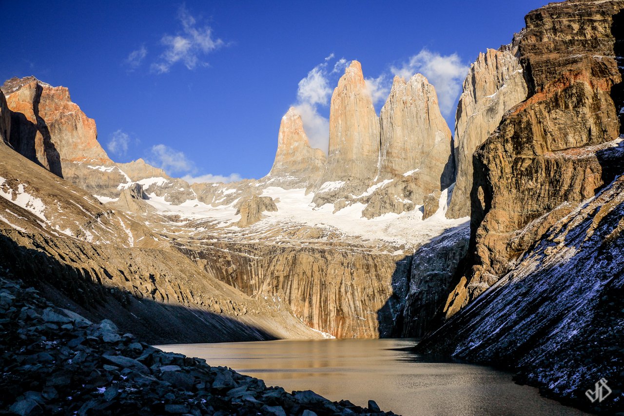 Passei o resto da manhã sozinho lá em cima. As Torres e eu, num silêncio absoluto. Perdi o nascer do Sol, mas ganhei uma paz que não tem preço. Era o que eu buscava nessa viagem. Deixei-me atrasar por lá, fazendo umas fotos, fatiando um salame e pisando na neve que em alguns pontos já se acumulava. Voltei para o acampamento, tomei outro café, um lanche, desmontei tudo e parti para a próxima parada.