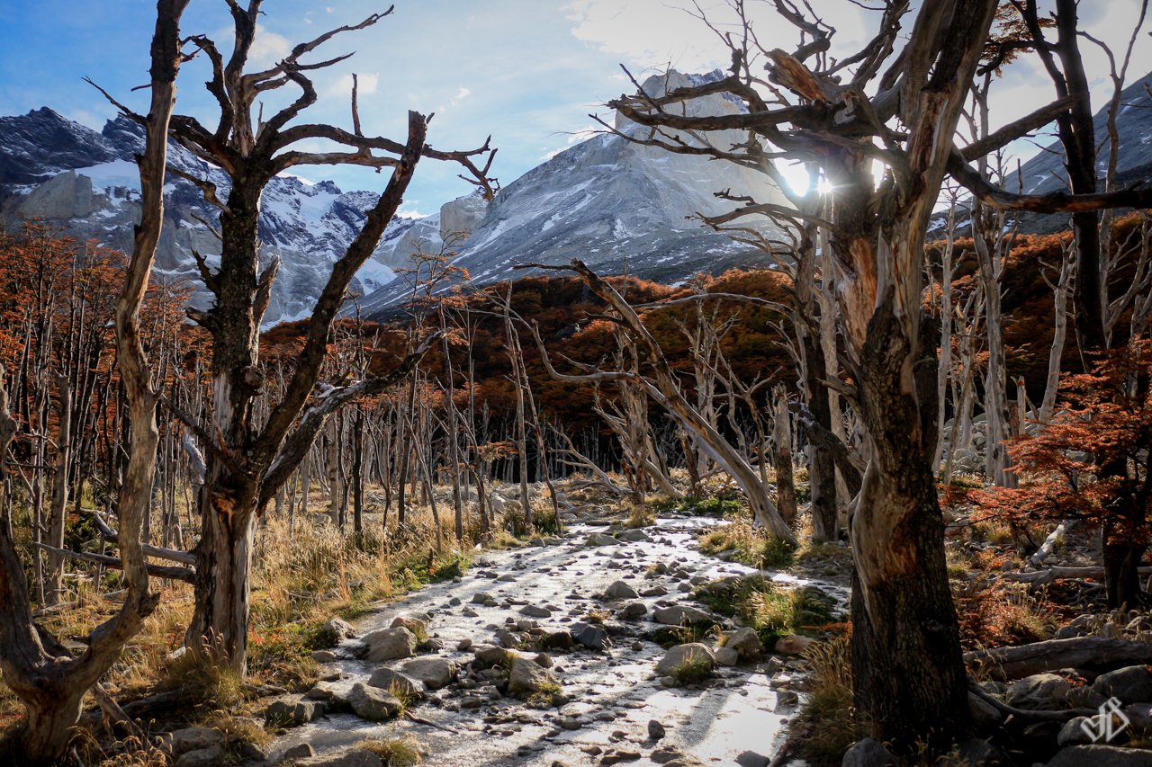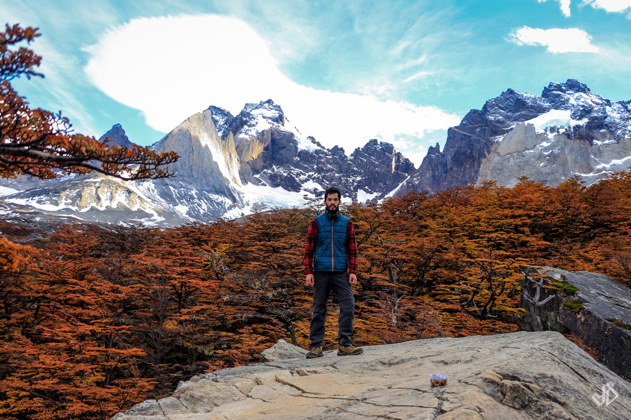 O terceiro dia foi mais curto. Meio-dia eu já chegava ao Acampamento Italiano e depois da batalha épica com o rato, decidi passar a tarde deitado à beira do rio ouvindo o barulho da água. Era possível ouvir algumas avalanches à noite, vindo das Torres ou dos Cuernos, tal era o silêncio. Consegui dormir um pouco melhor, pendurei a comida numa árvore, mas acordei bem cedo para não perder o nascer do sol dessa vez. Saí primeiro que todo mundo, atravessei o Vale Francês e cheguei no mirador Britânico às 10h. O nascer do sol combinado com as cores da vegetação no outono, me propiciaram a paisagem mais incrível de toda a viagem.