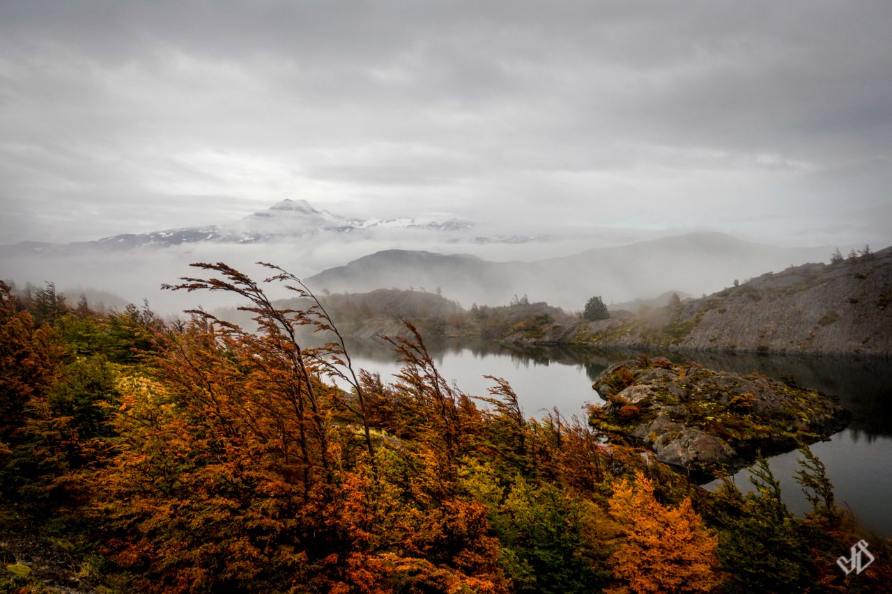 A cozinha estava cheia pela manhã, mas consegui um canto pra fazer um chá, um café, comer um pão com Amendocrem e esperar a chuva parar. Às 10h30 tinha conseguido secar as coisas na medida do possível e partir para o Acampamento Grey. Peguei uma neblina incrível sobre a Laguna Los Patos e perdi umas boas duas horas tirando fotos ali. Acabei chegando só às 16h no acampamento Grey.