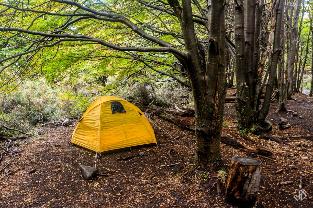 Ali também tem um hotel que os turistas podem chegar de barco, pelo lago Grey, tem uma lojinha onde me permiti comprar uma Coca-Cola, e a área de camping que fica num bosque um pouco à frente. Montei a barraca e fui até o mirante ver o Glaciar Grey.