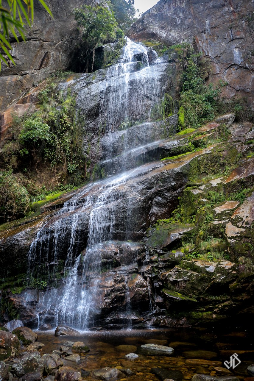 Logo nos primeiros minutos de trilha, saímos dela e pegamos a trilha para a cachoeira Véu de Noiva, que eu não conhecia. Um desvio de cerca de 1h, ida e volta, que vale pelo visual, mas que parecia repelentemente fria para um mergulho matinal.