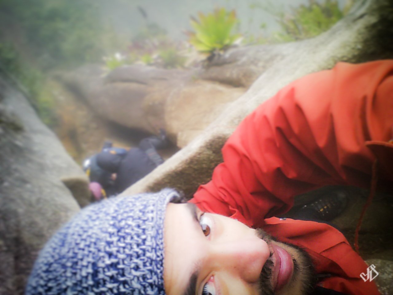 A caminhada no segundo dia é um sobe e desce sem fim pela serra, sentido Pedra do Sino. Logo no primeiro morro, a neblina veio e o dia promissor passou a ser branco. A aclamada vista da Serra dos Órgãos estaria oculta pelas nuvens. Uma selfie ali, ou uma selfie em casa com um lençol branco de fundo, ficaria igual.