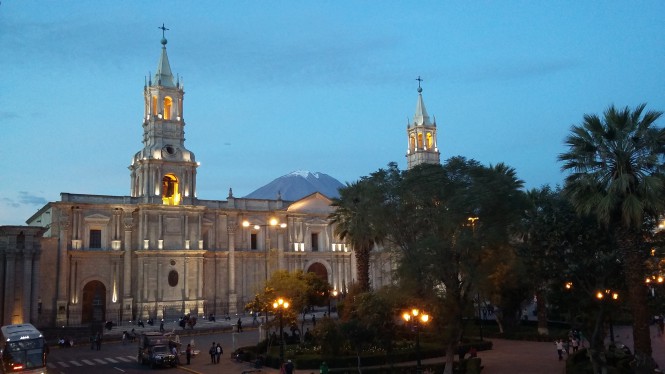 Sai de Nazca a noite rumo a Arequipa, cidade mais alta de todo o tour. Já sabia que as náuseas de Nazca não foram somente por conta do passeio de Teco-Teco. Porém, estava sozinha precisa continuar até meu objetivo, tão esperado e planejado durante tempos. Viajei de ônibus à noite e não vi muito da paisagem, entretanto o ônibus tinha serviço de bordo e muito pontual no horário, fui tratada como vip no Cruz Del Sur. Chegando em Arequipa, fiquei confusa para encontrar o Hostel, depois de muito usar meu espanhol.... encontrei minha nova casa o Hostel Pirwa, localizado próximo de tudo, fui visitar o Convento de Santa Catarina e a Múmia Juanita, depois sessão de fotos e muitas fotos no centro da cidade e observar o vulcão na minha frente.