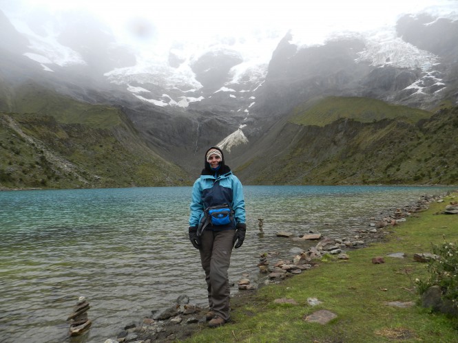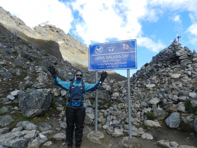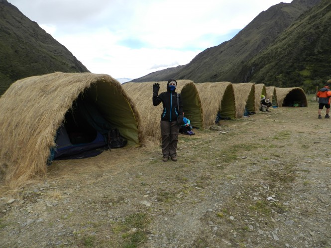 No dia seguinte já pelas primeiras horas da manhã, estávamos reunidos para iniciar a trilha. Embarcamos em um ônibus que nos levou até a cidade de Mollepada onde tomamos café, compramos alguns suprimentos pessoais e pé na trilha. Nosso grupo tinha carregadores, cavalos, dois guias, 14 pessoas e somente eu de brasileira. Nós poderíamos levar até 5k de utensílios pessoas, entretanto quando vi que seriam anexados no lombo de mulas, eu mesmo levei minha mochila. A caminhada durou o dia interior até a cidade de Soraypampa, vi paisagens lindas, um sobe e desce sem fim, muita vegetação e cachoeiras. Os guias explicavam tudo sobre sua cultura e os pontos importantes das cidades. Encontramos vários outros grupos fazendo a mesma trilha, porém nenhum se juntou cada um deveria ter atenção para não seguir o grupo errado. Esta cidade foi nossa primeira parada, os acampamentos já são estratégicos, as barracas já ficam montadas e a comida é feita pelos nossos carregadores (sherpas peruanos). Esse local foi o nosso primeiro pernoite aos pés de um vale montanhoso lindo, da minha barraca via uma montanha coberta de gelo. Após o jantar e muitas conversas, fomos dormir, pois essa seria a noite mais fria que iria passar. Coloquei meu agasalho e entrei no meu saco de dormir. Um erro tremendo! Porque suei horrores e fiquei gelada. Hoje já sei como dormir em um saco ou bivak. Acordamos já na madrugada, o dia ainda estava amanhecendo, arrumei minha bagunça, tomamos café e iniciamos nosso segundo dia que seria de incansáveis subidas e a vista para uma lagoa de degelo linda.