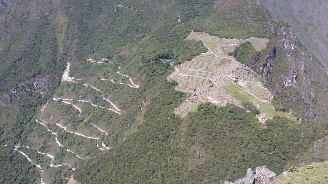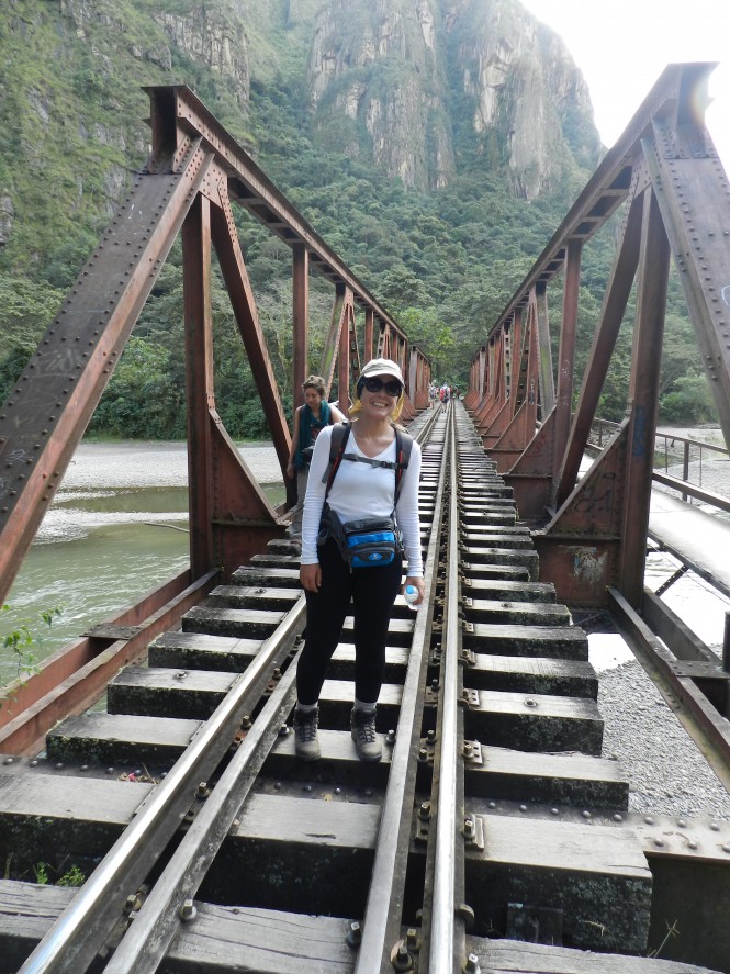 No quarto dia a trilha era da Hidroelétrica para Águas Calientes, cidade base para a trilha até Machu Picchu. O sonhado banho em uma das termas do caminho não aconteceu, algumas estavam fechadas e a única que encontramos aberta estava bem cheia, muitos foram tentar um banho mais eu não aprovei a ideia de tirar toda minha sujeira na água com odor de enxofre, preferi manter o lencinho umedecido por mais um dia. Chegando a Hidroelétrica, poderíamos ir de trem até Águas Calientes ou caminhar pela via férrea, eu preferi a caminhada. Foi sensacional ver a floresta local, escutar o barulho das águas de supostas cachoeiras e depois de alguns quilômetros podemos observar o topo da Cidade Inca perdida. Estava muito perto meu coração batia rápido e já sabia que na manhã seguinte colocaria os pés em um dos pontos mais bonitos do planeta.