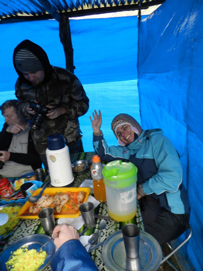 O foco do terceiro dia era a caminhada quase toda plana de Colpapampa até a Hidroelétrica, encontramos vários grupos que também pernoitaram no acampamento. Essa noite foi de festa, nossos sherpas fizeram um jantar muito especial e a noite estava estrelada era impressionante a concentração de estrelas por metro quadrado no céu. Foi passado as instruções do próximo dia de caminhada e fomos dormir no friozinho das barracas. Durante toda a trilha não tomamos banho e eu já estava contando as horas para chegar à Hidroelétrica onde durante o caminho encontraríamos as termas com águas vulcânicas.