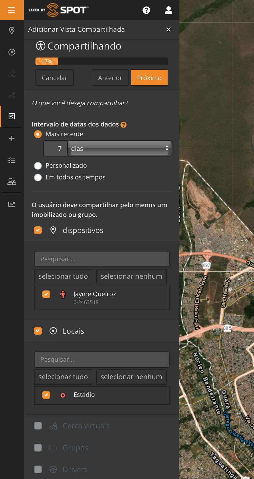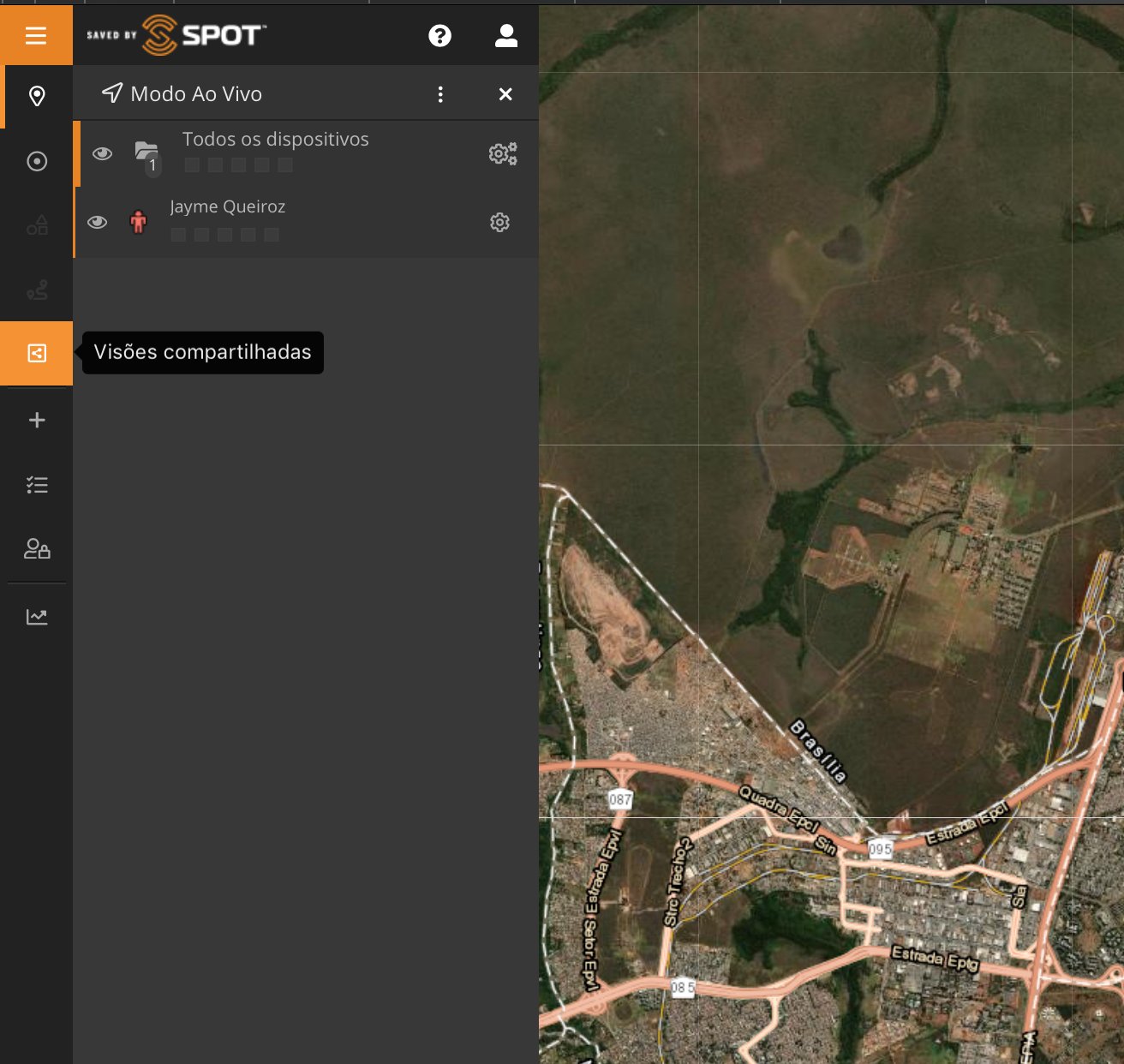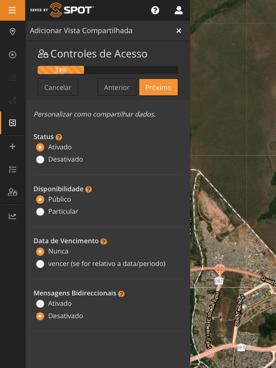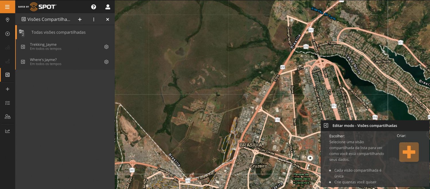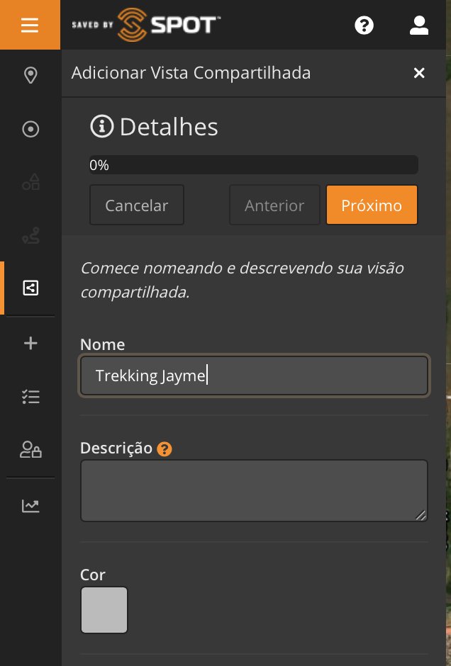 Como visto na Parte 1, clicando no ícone "+" também temos a opção de adicionar uma "Vista compartilhada". Criar uma Vista ou Visão compartilhada é como podemos compartilhar nossa localização, itinerários e locais com familiares e amigos, além de trocar mensagens (SPOT X) .
