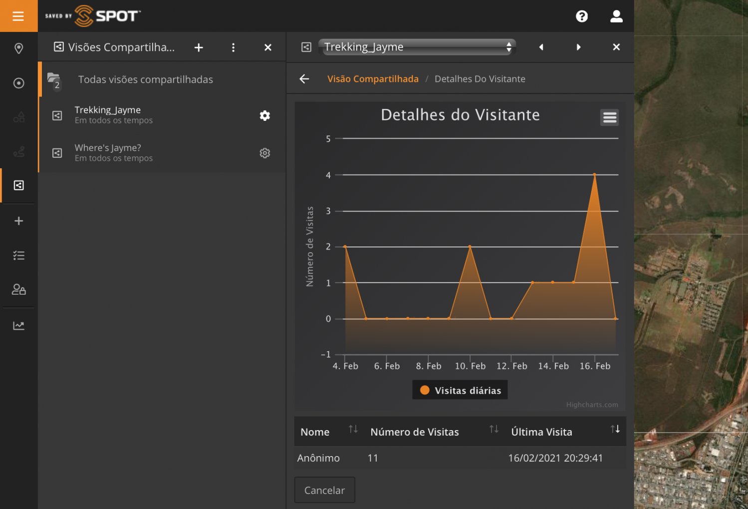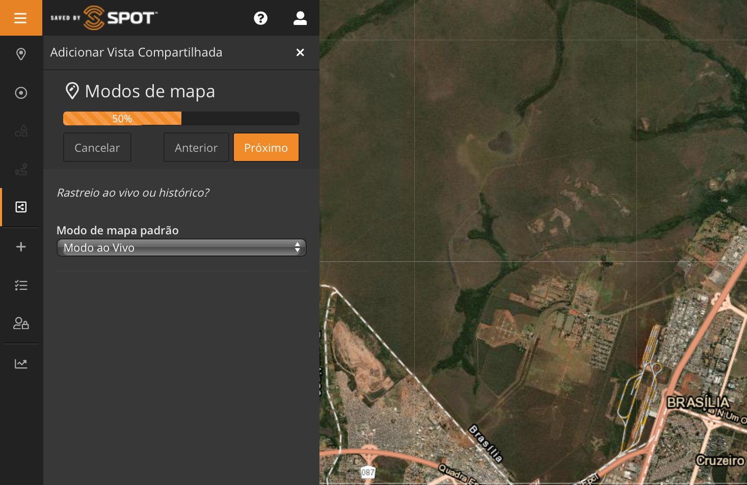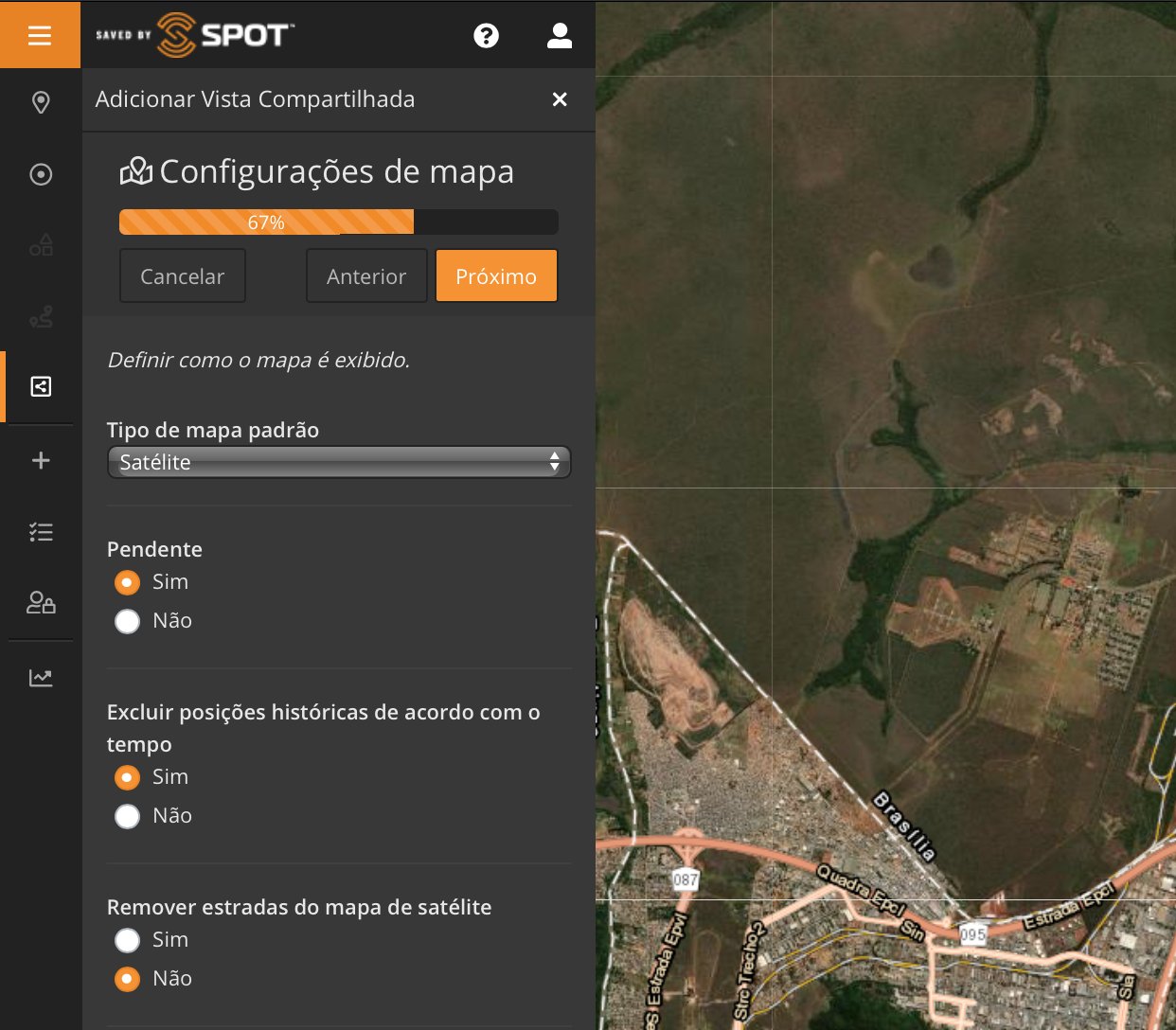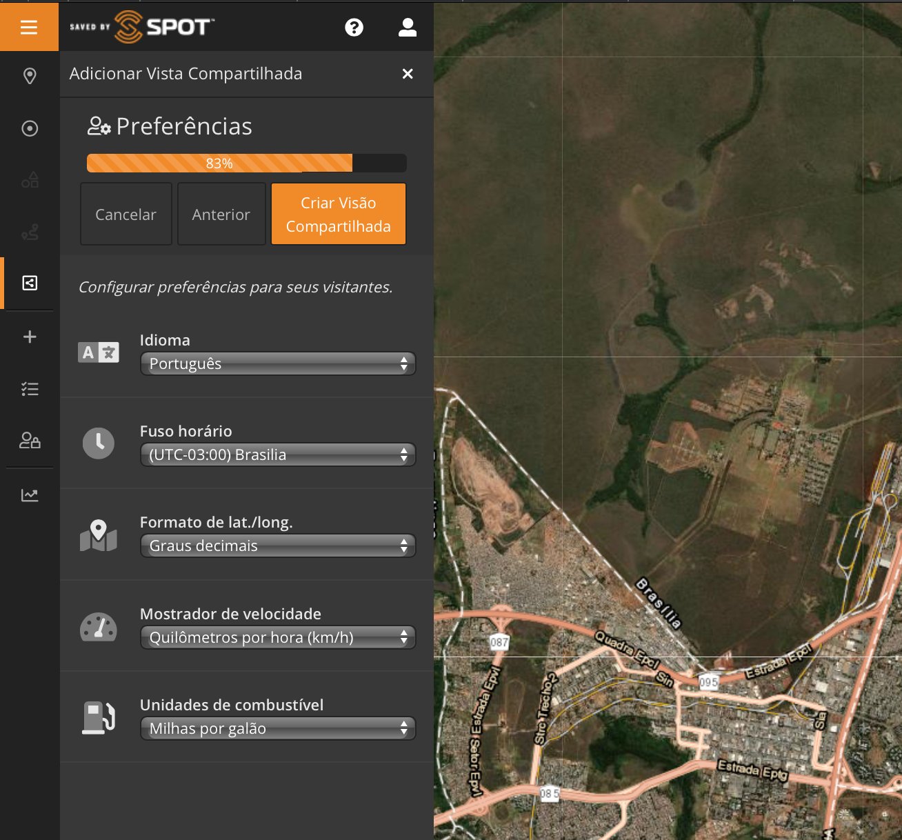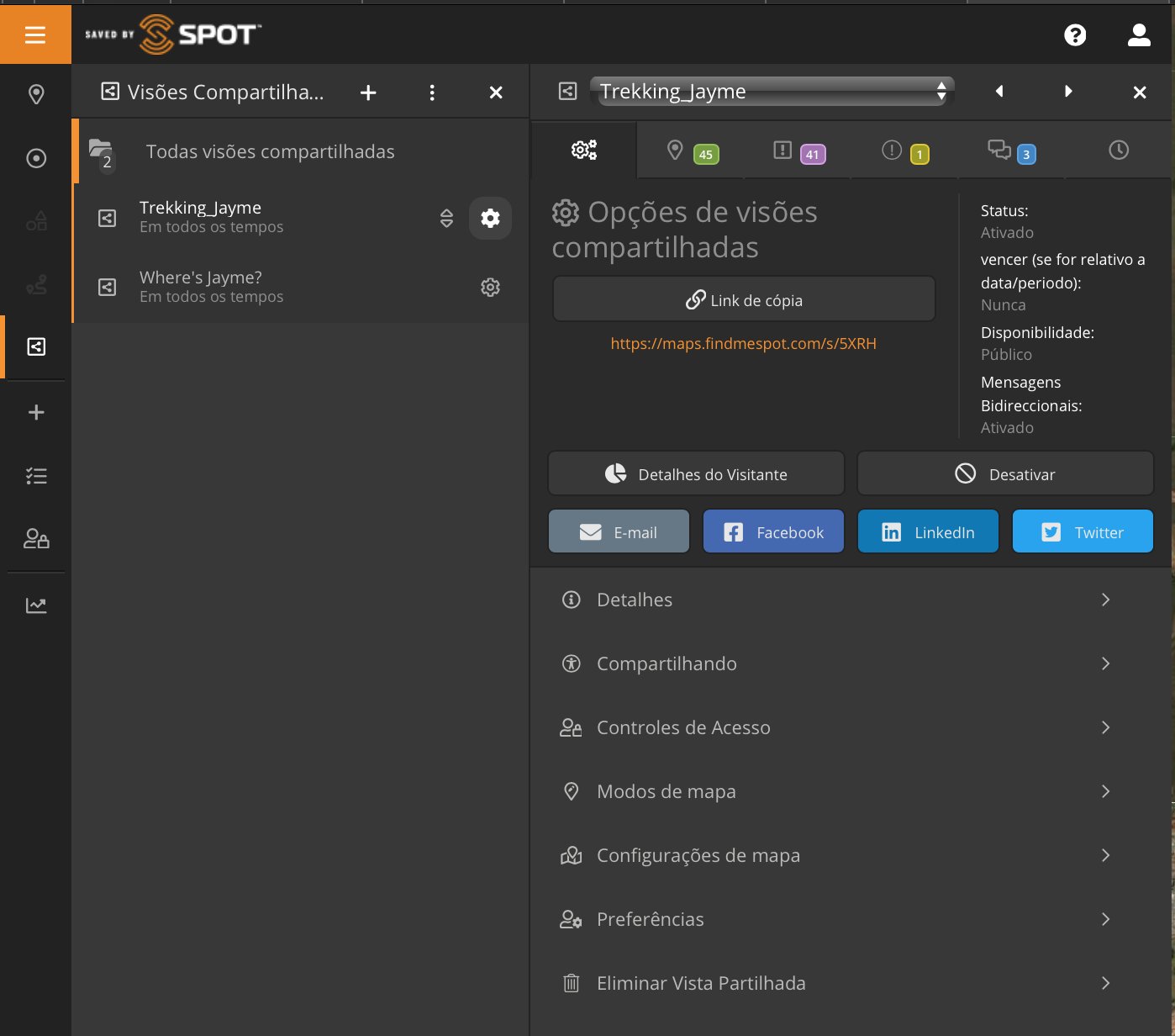 Como visto na Parte 1, clicando no ícone "+" também temos a opção de adicionar uma "Vista compartilhada". Criar uma Vista ou Visão compartilhada é como podemos compartilhar nossa localização, itinerários e locais com familiares e amigos, além de trocar mensagens (SPOT X) .