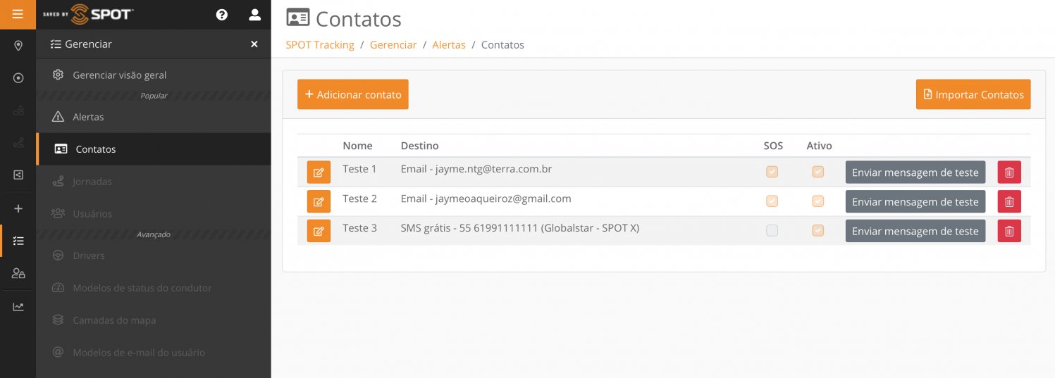 A criação de contatos no Mapeamento é opcional. Eles serão úteis para receberem alertas criados na plataforma e para troca de mensagens (SPOT X).