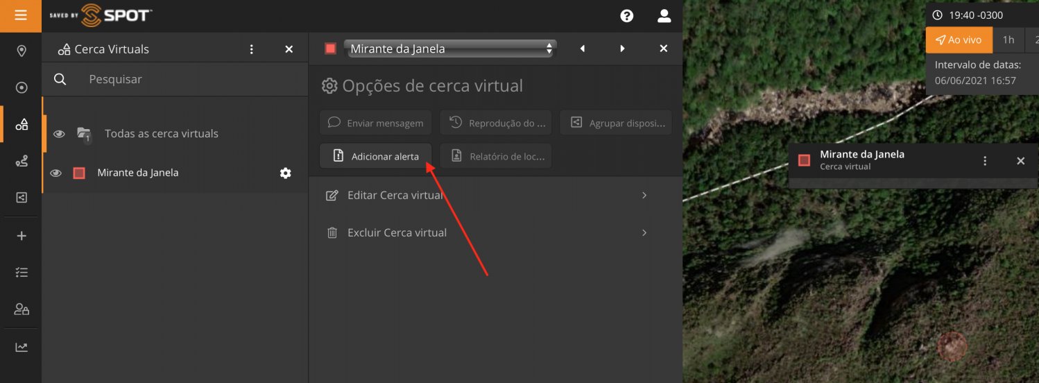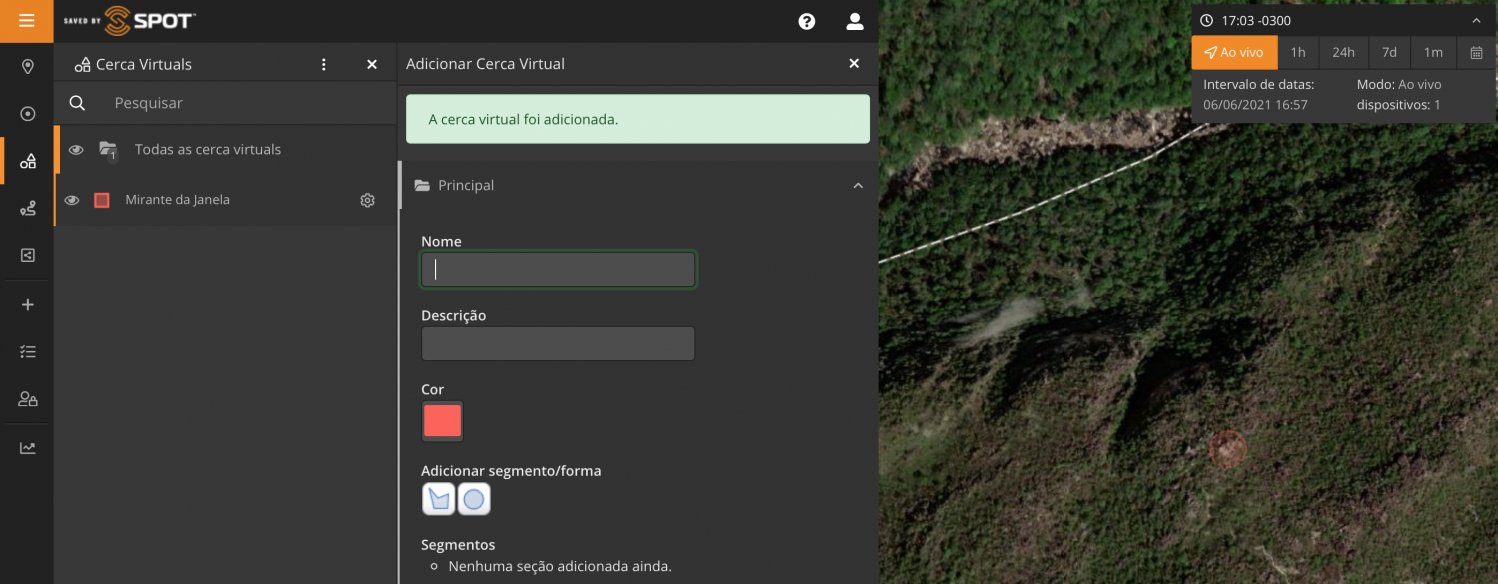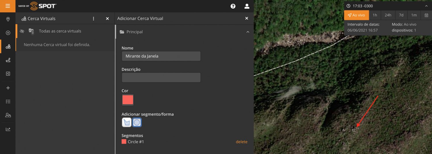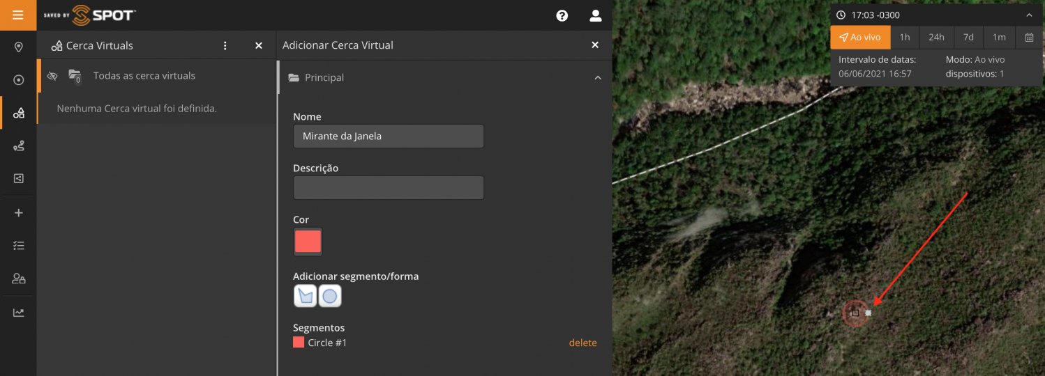 Aproveitei a trilha para testar as Cercas Virtuais, presentes no Mapeamento SPOT. Lembrando que a opção de Cercas Virtuais só está disponível nos Planos Premium e Entreprise.