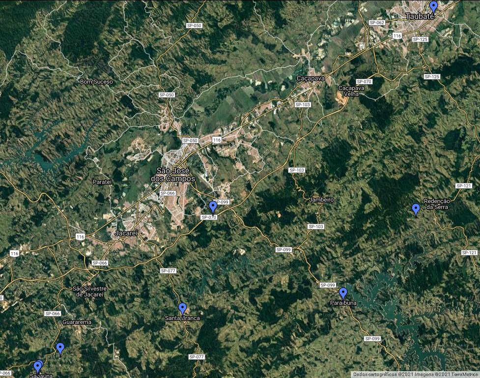 A partir daí o próximo passo foi criar a rota. O Google Maps dava como sugestão três opções, via Salesópolis, via Carvalho Pinto ou via Santa Branca. Comparando as três não haviam grandes diferenças de distância e tampouco de altimetria e, sendo assim, resolvi optar pelo mais prático, ir via Salesólopolis, afinal moro a cerca de 20km de Biritiba Mirim, via estrada de terra. E, ainda usando o Maps, comecei marcar no caminho bicicletarias, mercadinhos, etc, para usar em eventualidades (assim a bike iria praticamente vazia).