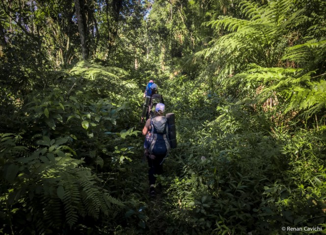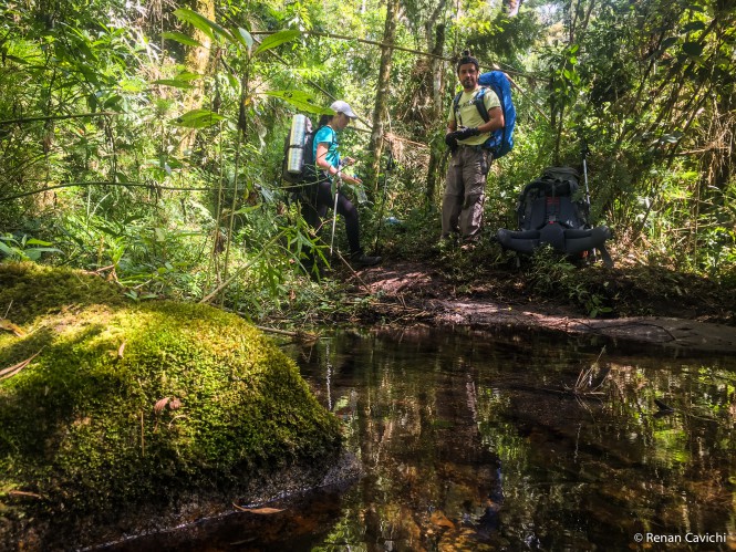 Encontramos por toda ela várias pessoas no sentido contrário, algumas bem equipadas mas a maioria apenas com mochilas de ataque ou nem isso. Num destes primeiros grupos o Renan e a Bruna perguntaram quanto tempo de subida eles já haviam feito e, para surpresa de ambos, foi dito apenas “uma hora e meia”. Tínhamos conhecimento que o percurso não era longo, só não imaginávamos que fosse tão curto.