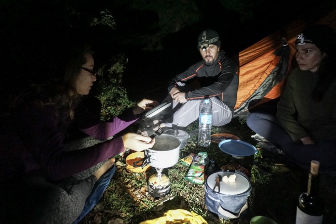 Desta vez, como diferencial por ser um trekking “curto”, optamos pelo clássico, porém relegado, lamen com molho de tomate e queijo, acompanhado de um cabernet e muita, muita conversa fiada e afiada. (especial atenção à minha luta em favor do mito Monty Python e o Cálice Sagrado https://www.youtube.com/watch?v=d0xBv3mGg2Y). Logo após, nos recolhermos ao som animado das conversas dos vizinhos (que se estenderam madrugada a dentro) sobre assuntos que aqui não cabem (leia-se +18).