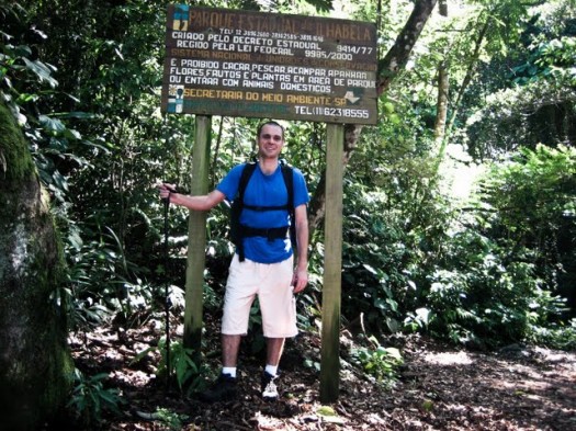 Após alguns minutos de caminhada leve, chegamos ao portal do Parque Estadual da Ilhabela.