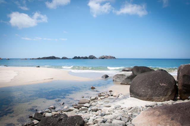 Como a trilha possui várias subidas íngremes o organismo não tardou a mostrar quem é que manda, punindo os adeptos do ócio com câimbras e desconforto muscular. Ainda assim, seguimos num bom ritmo e, após cerca de 4h, concluímos a trilha e avistamos a magnífica Praia do Bonete.