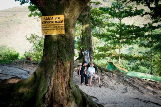 De volta à praia, depois de cortar caminho pela descida que sai próximo às canoas, conhecemos a “Praça da Conversa Mole”, um cantinho acolhedor da praia em meio aos chapéus de sol que por décadas já escutaram os causos de pescadores da região.