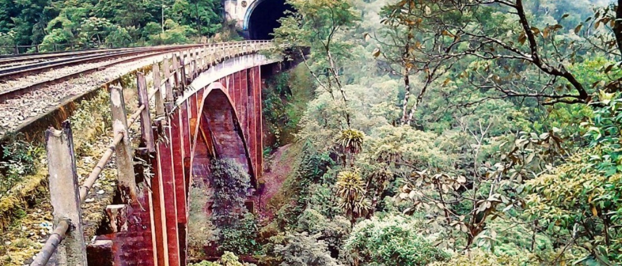 Decidimos partir, começamos a descer sentido litoral, quando de repente escutamos um barulho muito alto vindo em nossa direção, aguardamos onde estávamos e era um trem subindo, foi algo sensacional, já que nós "ubarnóides" (que termo escroto que utilizei em 2011 - resolvi deixar nessa edição para rir sempre ao ver este relato)" não estamos acostumados com esses trens de carga. O trem passou por nós e nem deu uma buzinadinha (maquinista sem graça), mas apenas a gravação e fotos já foram o suficiente. Continuamos a descer, andamos sobre pontilhões e chegamos ao túnel 27 (próximo a cachoeira da usina), logo na seqüência vieram os outros túneis e pontilhões que, por sinal, tem vistas magníficas. Já ao final do túnel 26 encontramos um índio que estava vindo de Itanhaém, ele nos informou que existe outra trilha pouco antes do túnel 25, só que era bem íngreme, nem tentei arriscar, nos despedimos e partimos. Chegamos ao famoso túnel 25, confesso que foi um sufoco atravessá-lo devido à sua extensão e ao receio de trombarmos de frente com um trem. O túnel estava cheio de buracos entre os trilhos, além de ser bem úmido. Após a passagem do túnel 24 e 8 km percorridos sobre a linha férrea paramos para um lanchinho, foi quando encontramos um palmiteiro que nos orientou sobre a trilha.