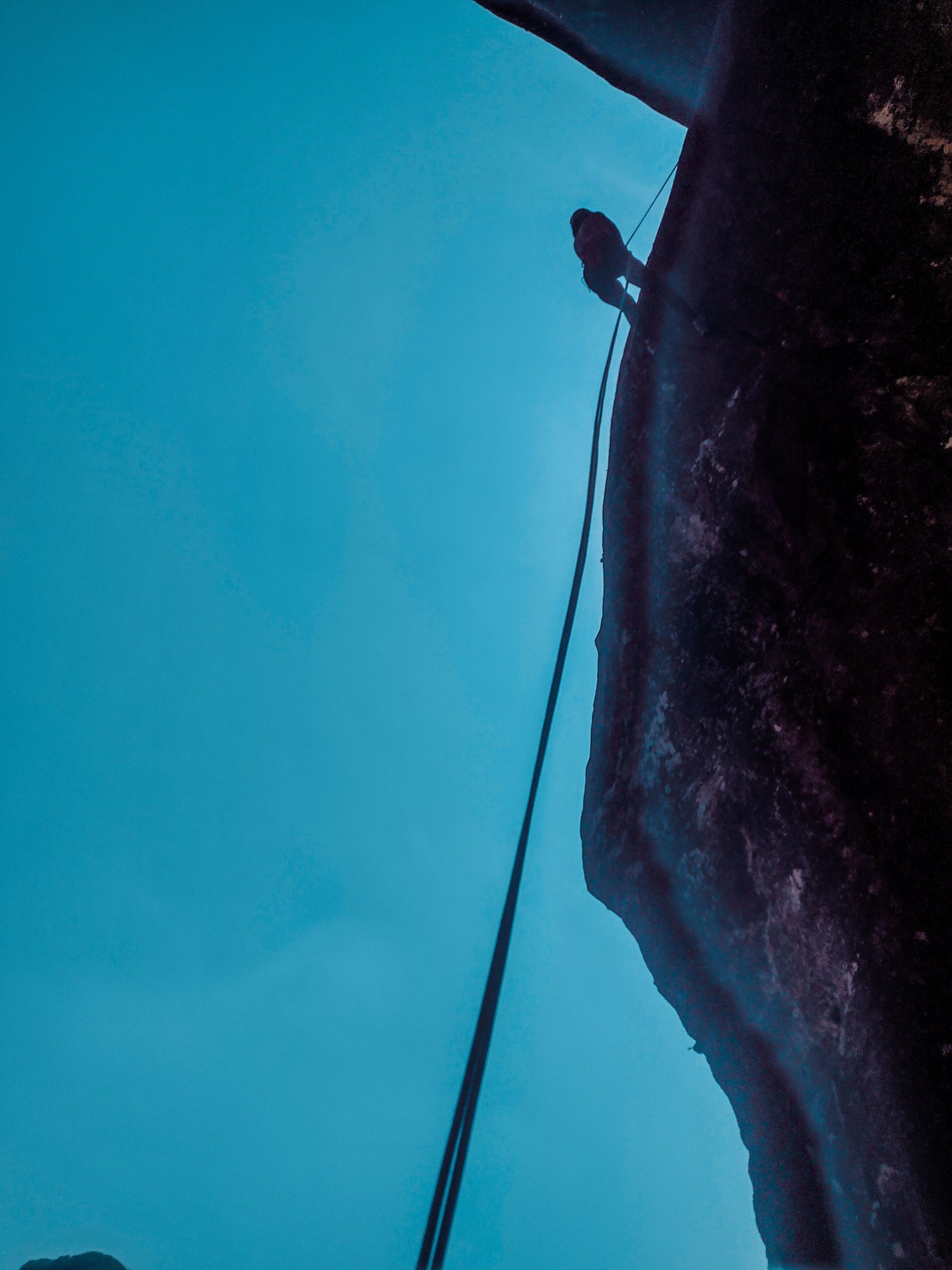 Fizemos o rapel tradicional pela Teixeira, que frio na barriga. Não é todo dia que temos um abismo lindo daqueles aos nossos pés. No meu caso nunca, porque eu nunca havia feito um rapel negativo, dá para acreditar?