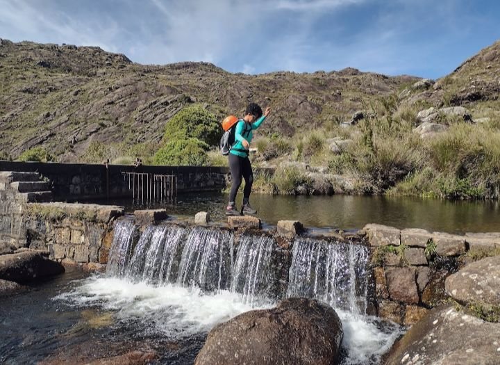 Veio o meu primeiro obstáculo, as pedrinhas da represa, senti medo de passar por elas, dá para acreditar?