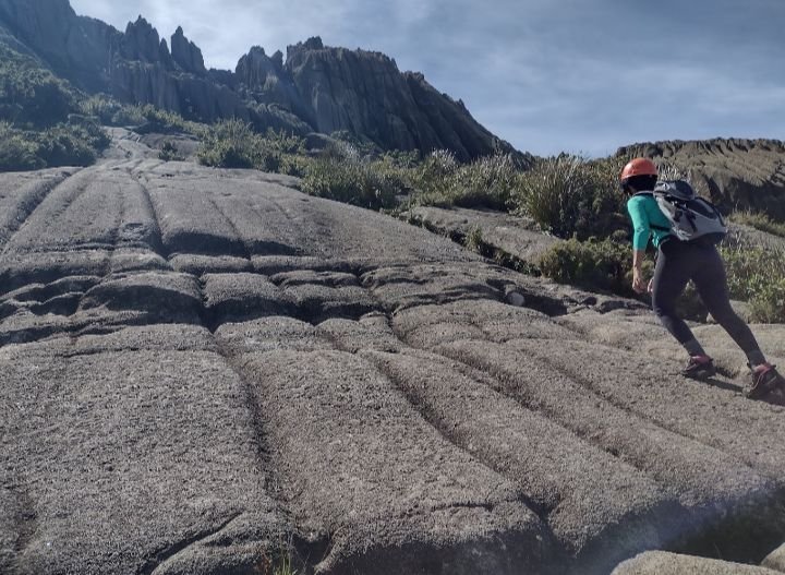 Fui subindo, trechos só caminhando outros escalaminhando.