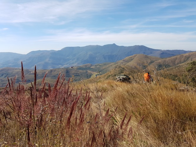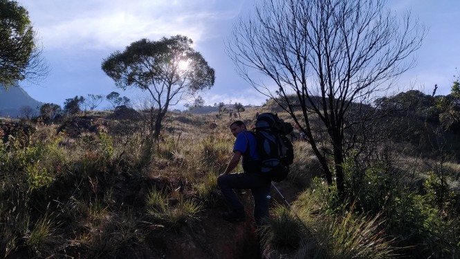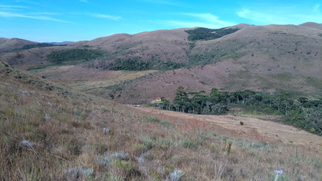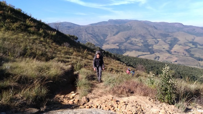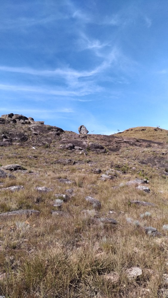 Logo nos deparamos com uma subida bem forte, em mata fechada onde perdemos um tempinho com o Sol caindo rápido e a preocupação aumentando. Saindo da mata, algumas planícies de vegetação rasteira até chegar ao Retiro dos Pedros, local que era utilizado como refúgio de escravos (confere?).