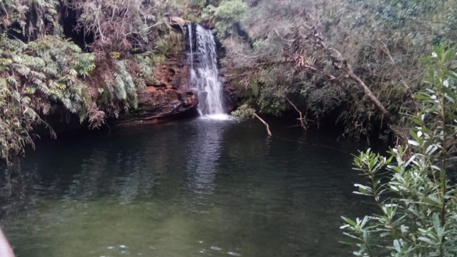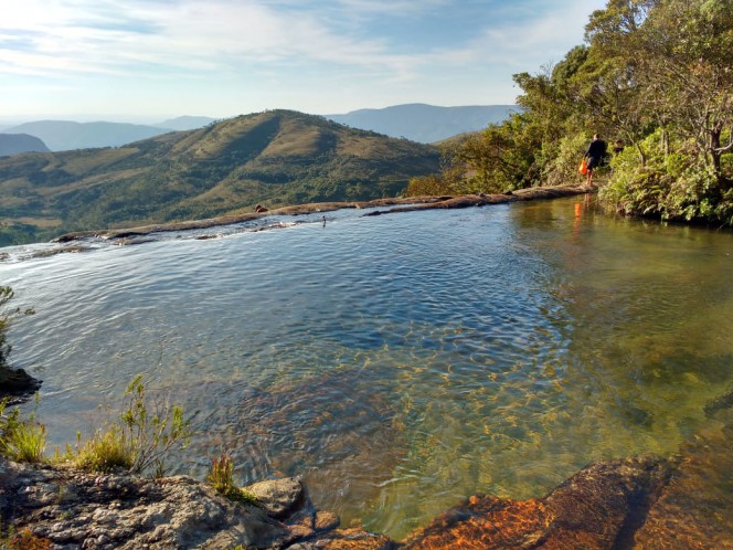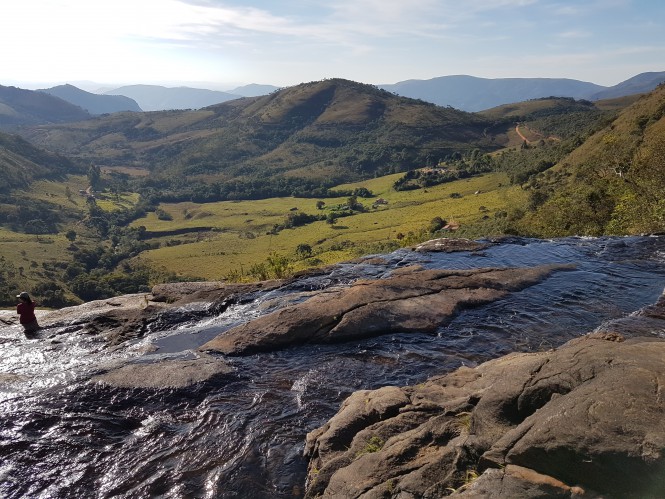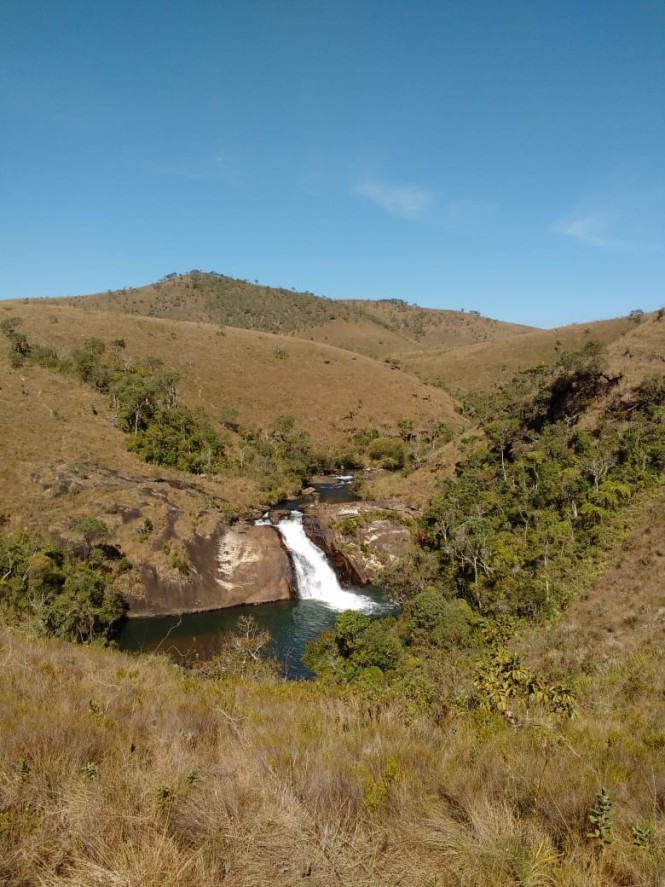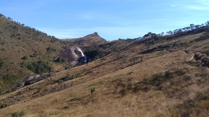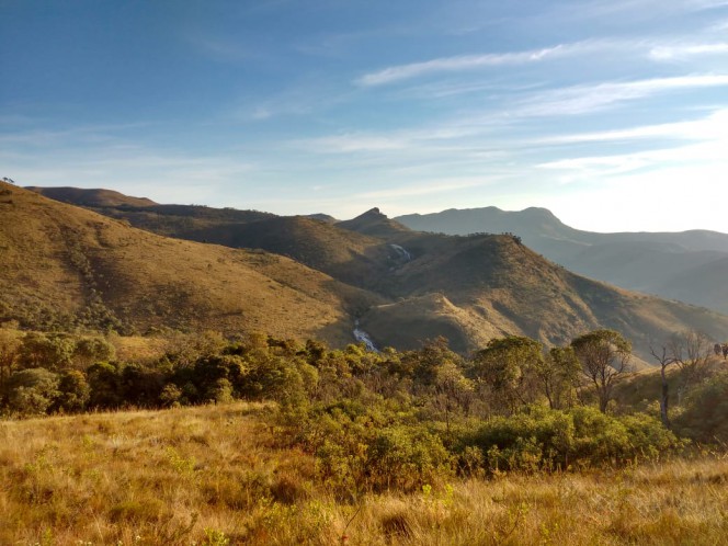 Seguimos apertando o passo pra conseguir chegar com luz ao Retiro dos Pedros e no caminho paramos um pouco num mirante de onde podíamos ver a cachoeira do André.