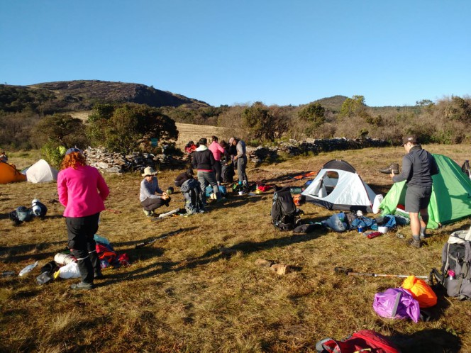 Levantamos acampamento um pouco tarde e já retomamos a travessia passando por planícies lindíssimas. As barracas acordaram molhadas pela condensação - lembre-se de levar uma flanela para secar ou chacoalhar bem antes de dobrar o sobreteto da barraca.