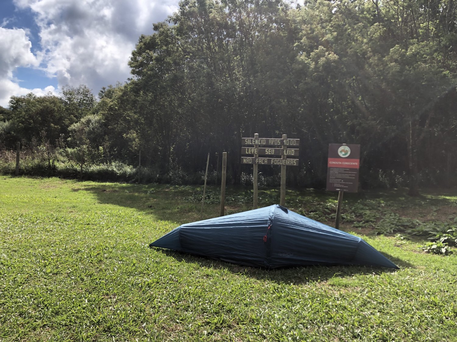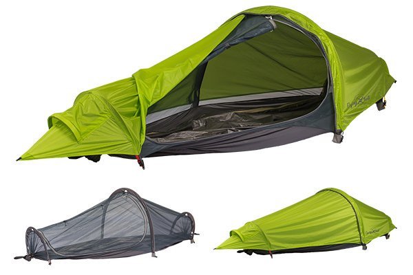 A barraca na verdade é um bivy aumentado. Não possui o conforto de uma barraca (não dá para ficar sentado, por exemplo), e nem tem avancê. Mas é incrivelmente grande para um bivy, cabendo com tranquilidade sua mochila e botas dentro. Na modalidade rede eu costumo colocar a bota dentro da mochila impermeável que vem a barraca.