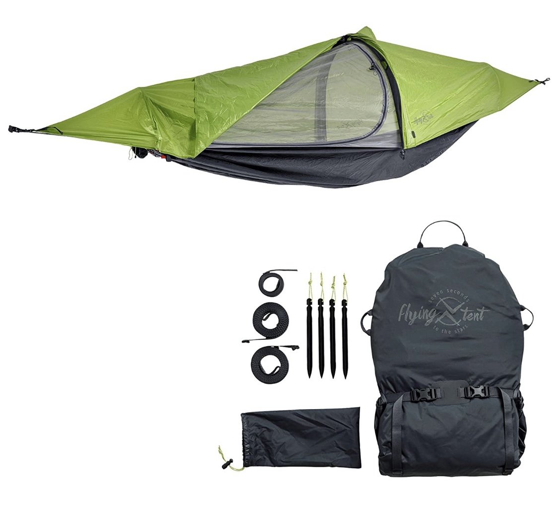 Breve review da barraca Flying tent: bivy, rede com tela, rede e poncho.