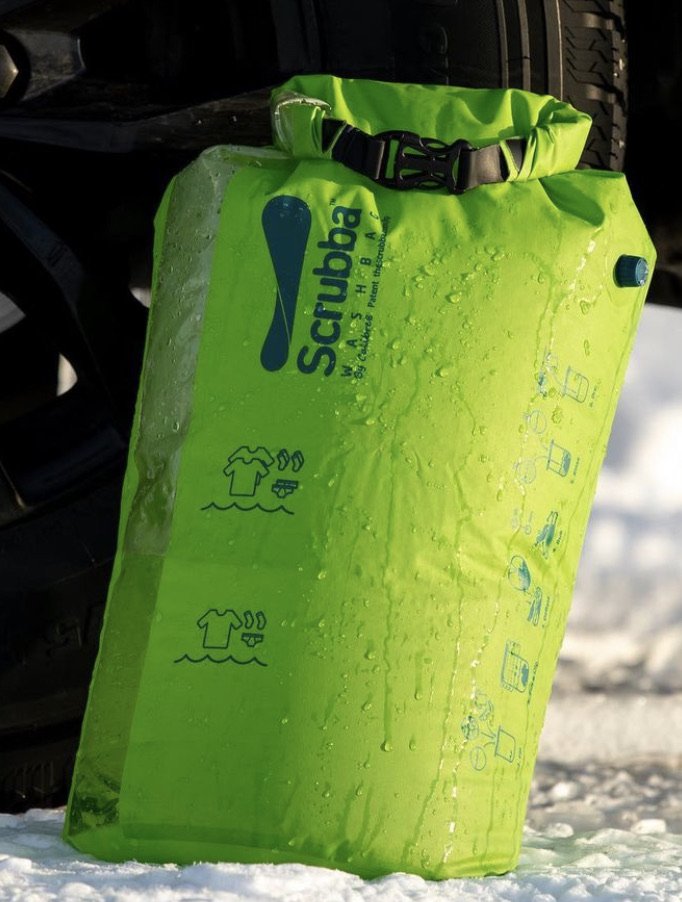 Tem saco que as vezes uso para levar a roupa e ele tb é uma maquina de lavar portatil (já falei aqui sobre isso). E as vezes uso ele até para transporte de agua (rio-cozinha):