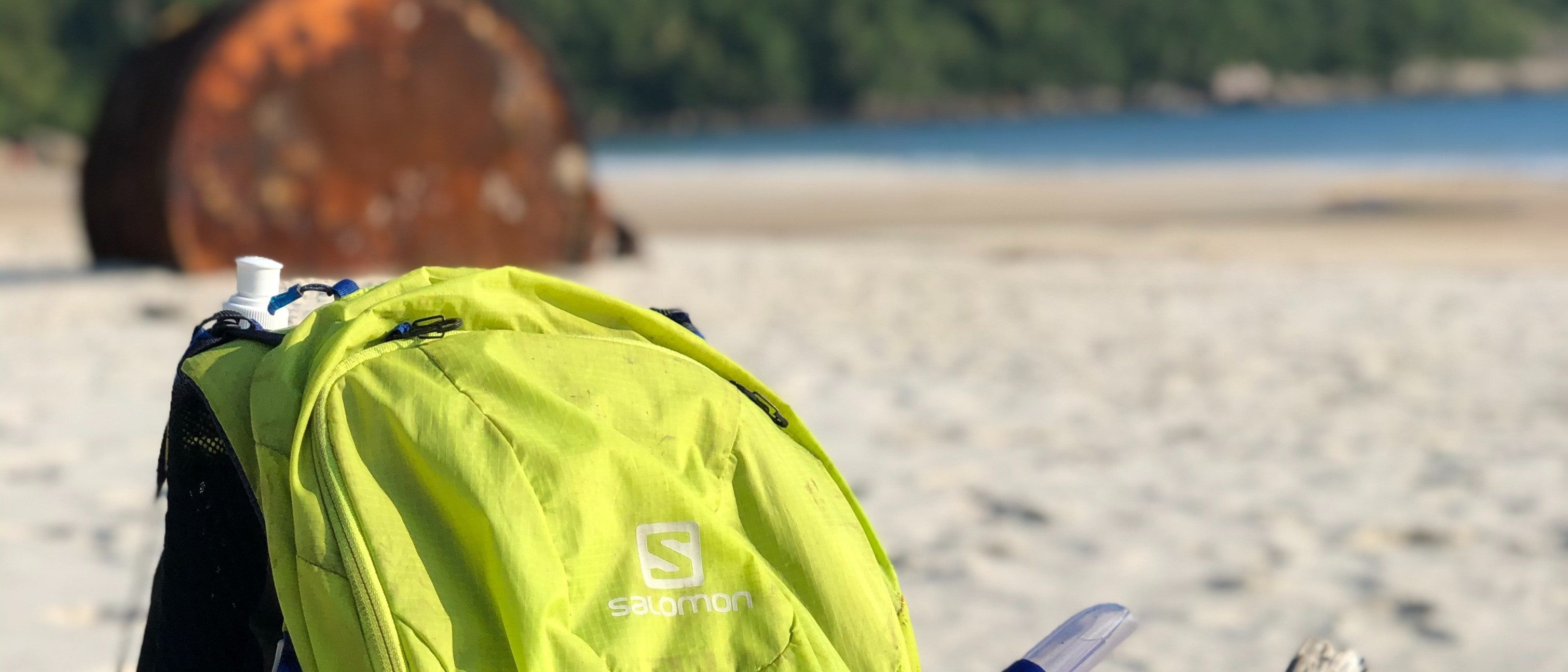 Como disse posso várias mochilas desde uma futura Pro que sozinha pesa cerca de 3,5kg até essa minimalista Salomon de 500g (agora tenho uma nova ultra leve, de 450g).