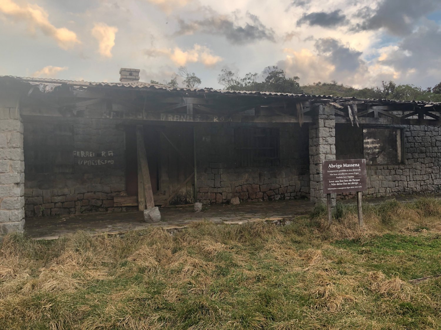 E fiz a janta e, aproveitando a area do abrigo, deixei o café da manhã montado. Não tinha uma alma. Vento soprando firme e fui apanhar agua, distante pouca coisa do local. Não tem sinal de celular ali, só um pouco antes.