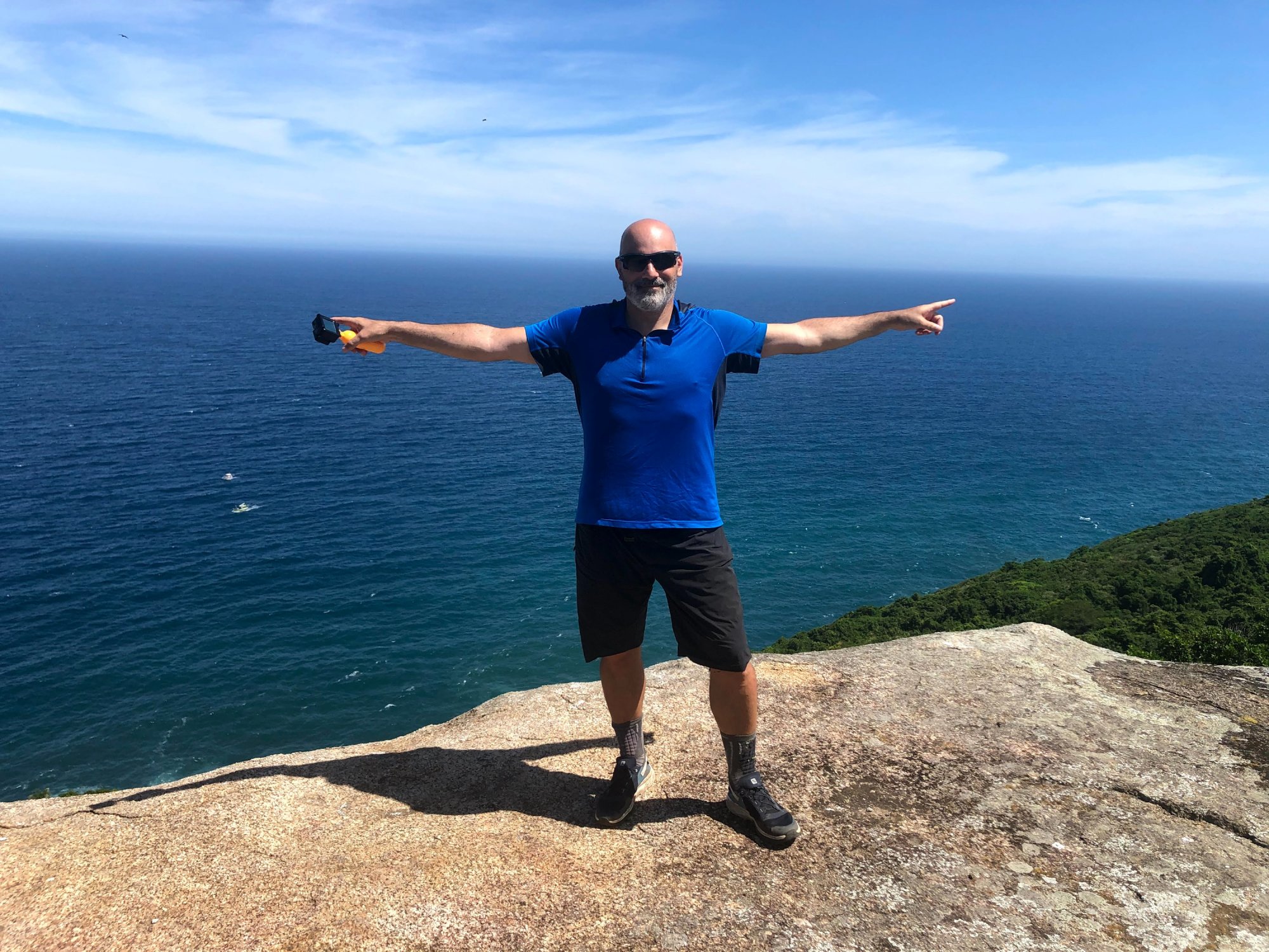 Bruno, falando em nado, eu andei treinando um tempo nas aguas de Copacabana, e por isso me senti bem a vontade para nadar ali. O chato é fazer a nado empurrando o isolante (nem sabia se ele suportaria o sal e o sol (o peso eu tinha testado)), nem os efeitos de eventual marola de lancha sobre ele. Mas no final de uns 40 minutos deu certo e cheguei do outro lado.