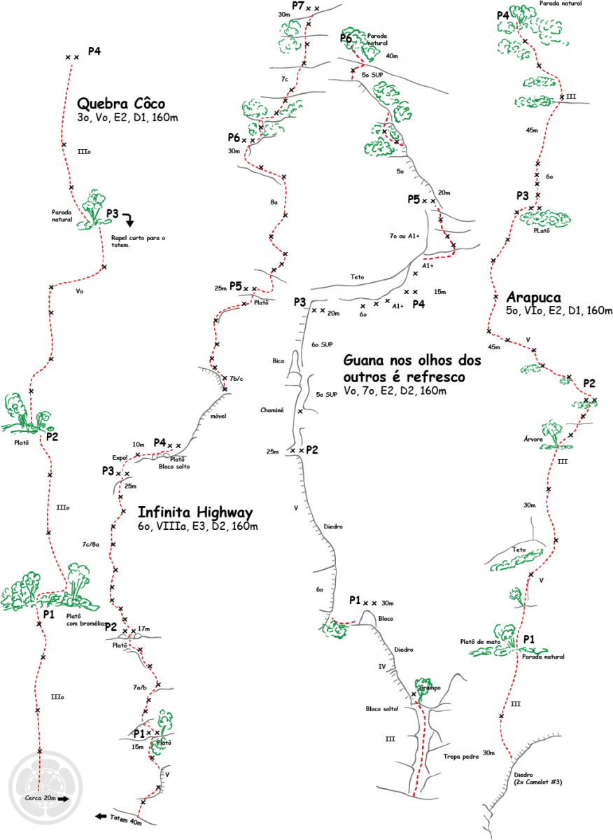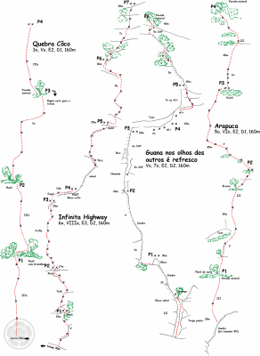 Atualmente, o local conta com mais de 60 vias esportivas e tradicionais com dificuldades que vão do 4o grau ao 10a brasileiro.