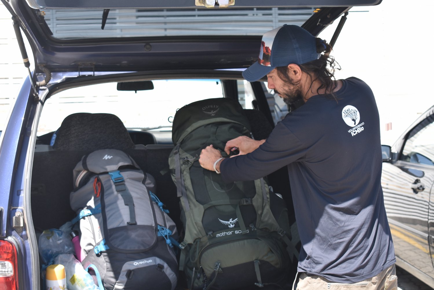 No fim da estrada das ferreiras chegamos ao ponto de parada, um estacionamento que fica em frente à fazenda Monte Verde, onde deixamos o carro, arrumamos algumas coisas na mochila e seguimos para o início da trilha