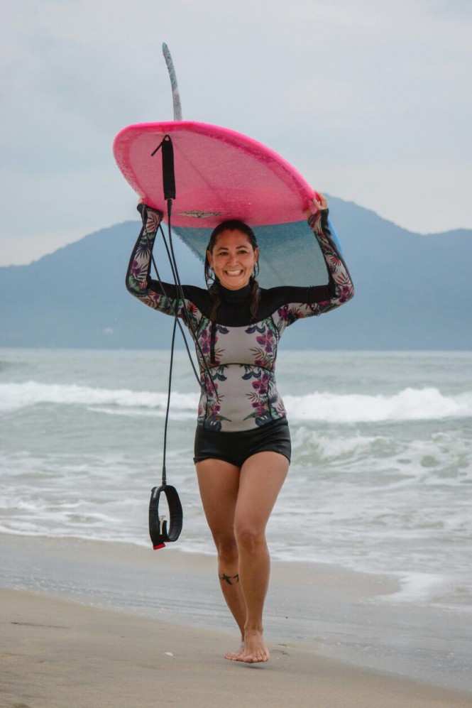 Botei a minha Alma Quilhas 10", escutei atentamente as instruções do Marcelo e fui. Durante uns 40 minutos acho que fui a pessoa mais feliz daquela Praia! A prancha é mágica, linda, me super entendi com ela e sai que as bochechas até doíam de tanto que eu sorria!