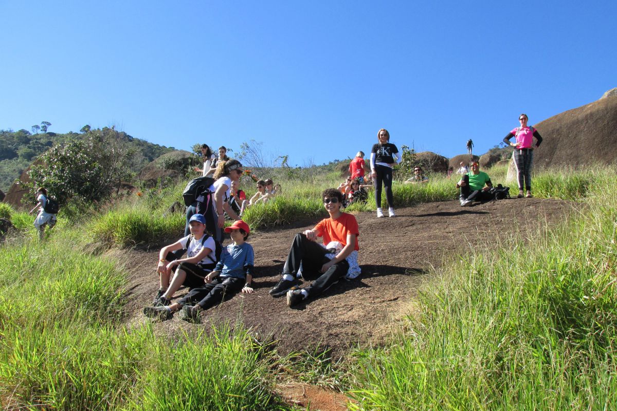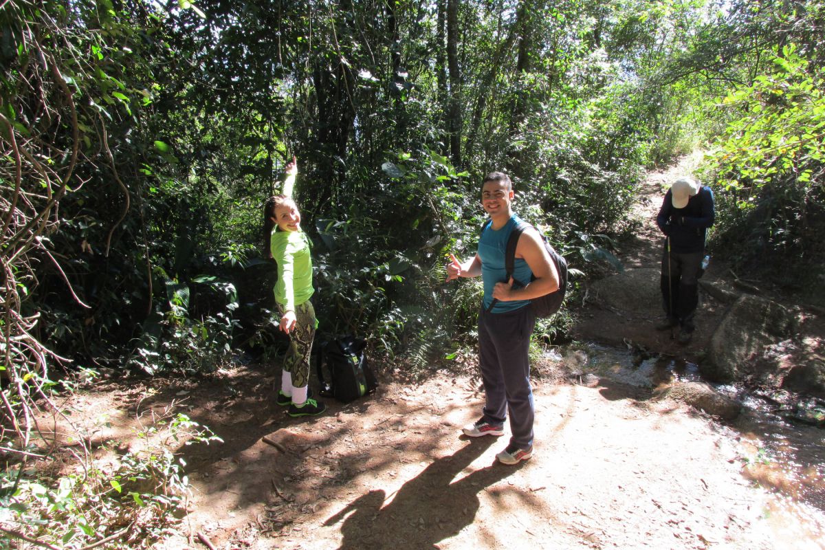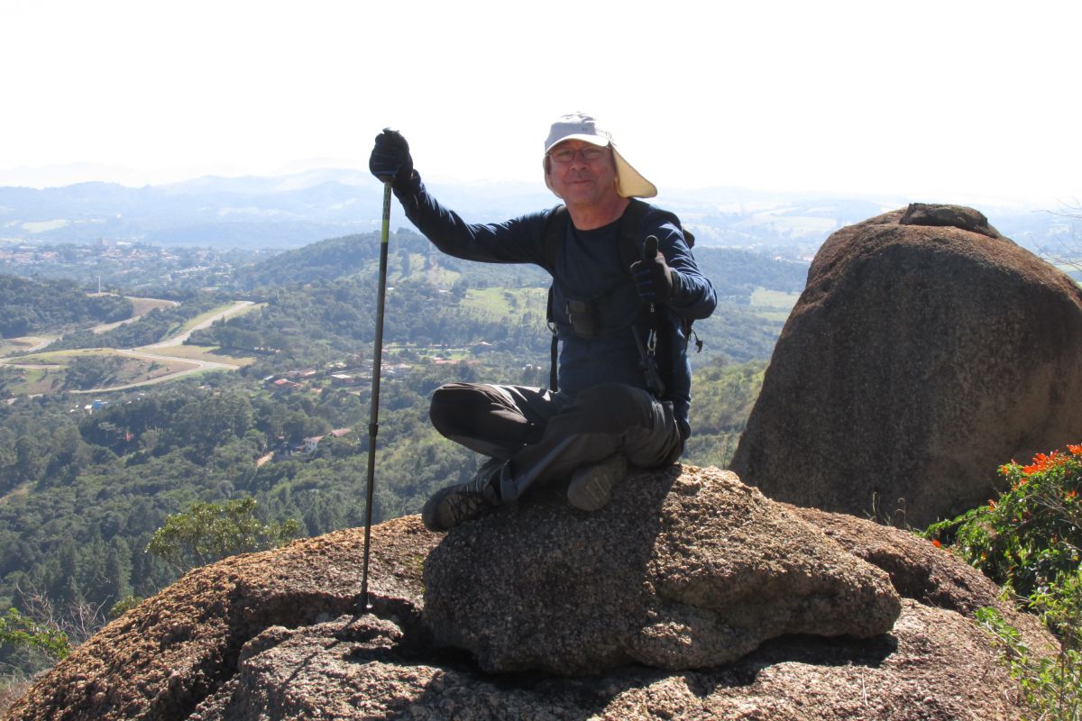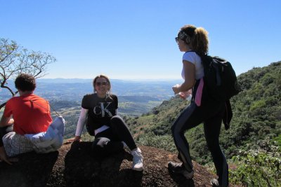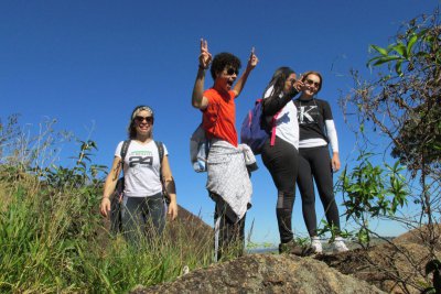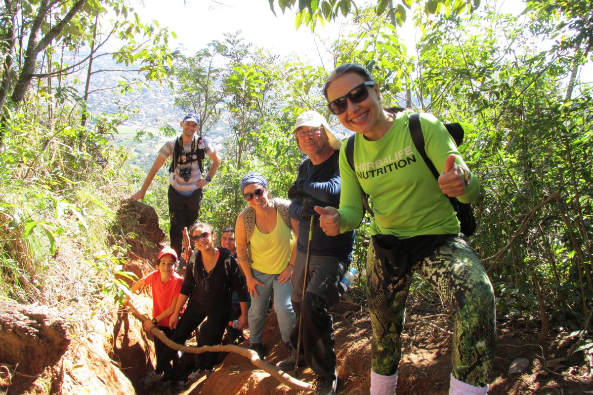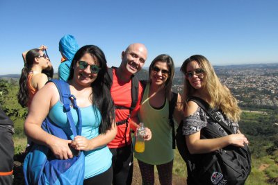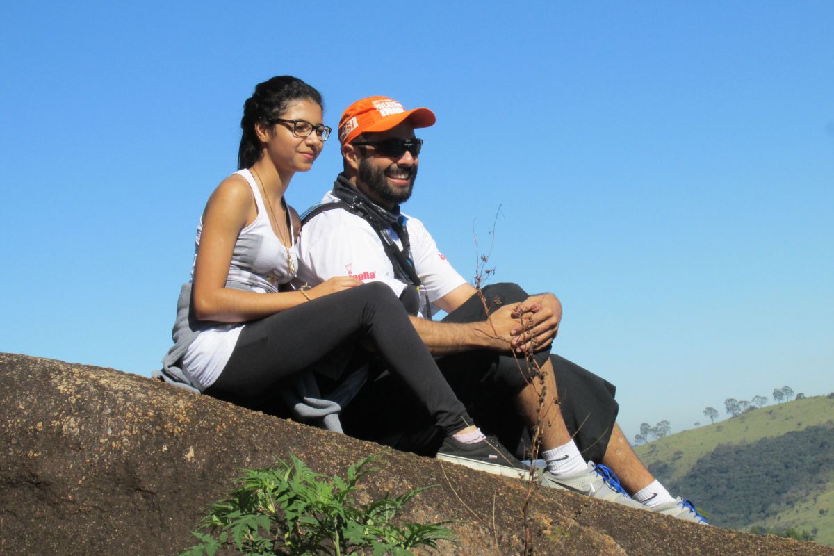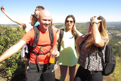 Juntamos os amigos e avançamos pela trilha Minha Deusa até atingir o cume da Pedra Grande em Atibaia