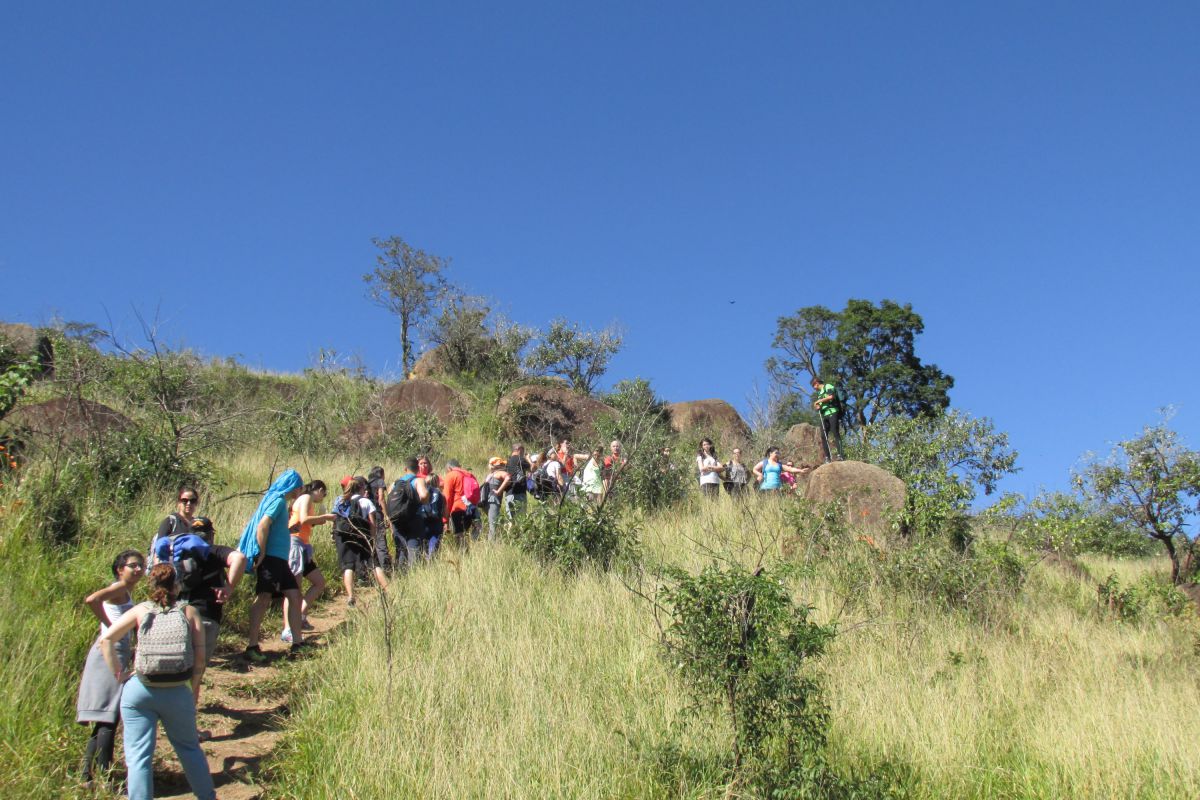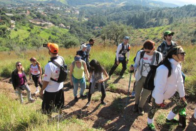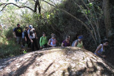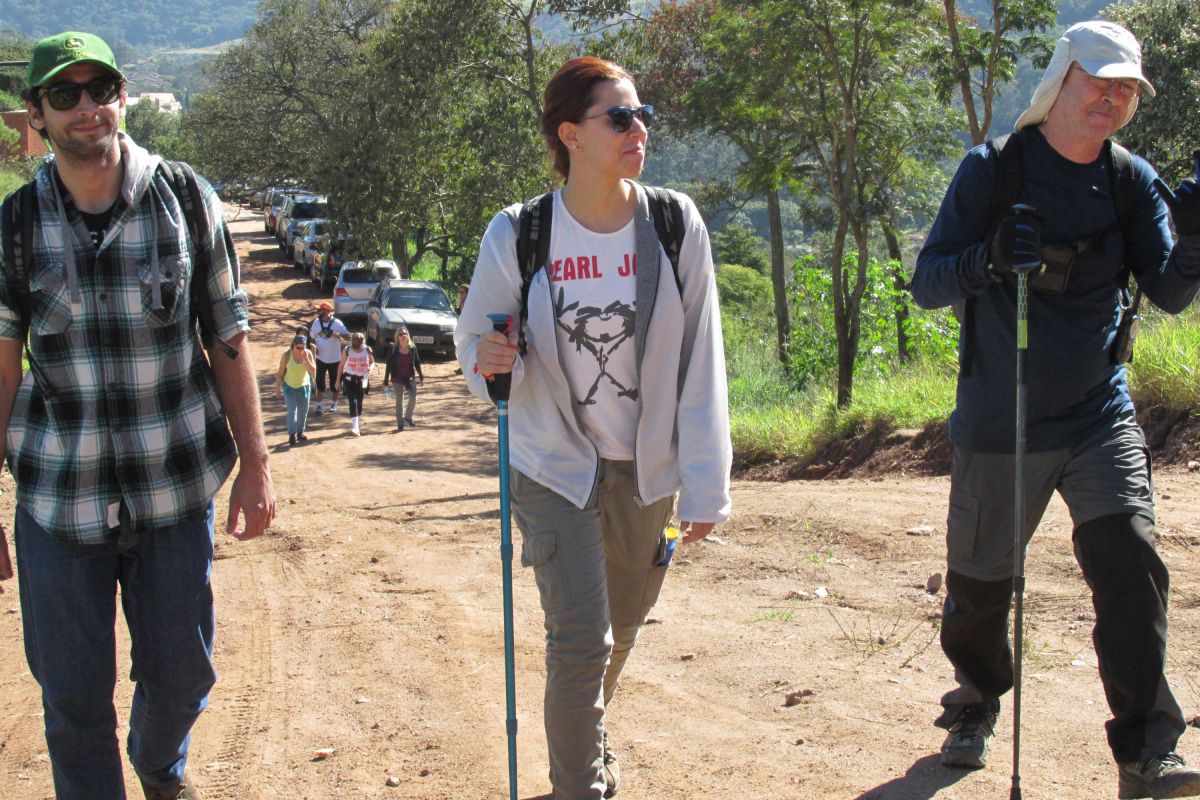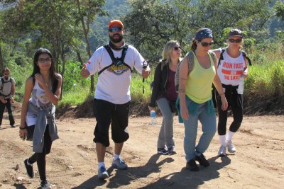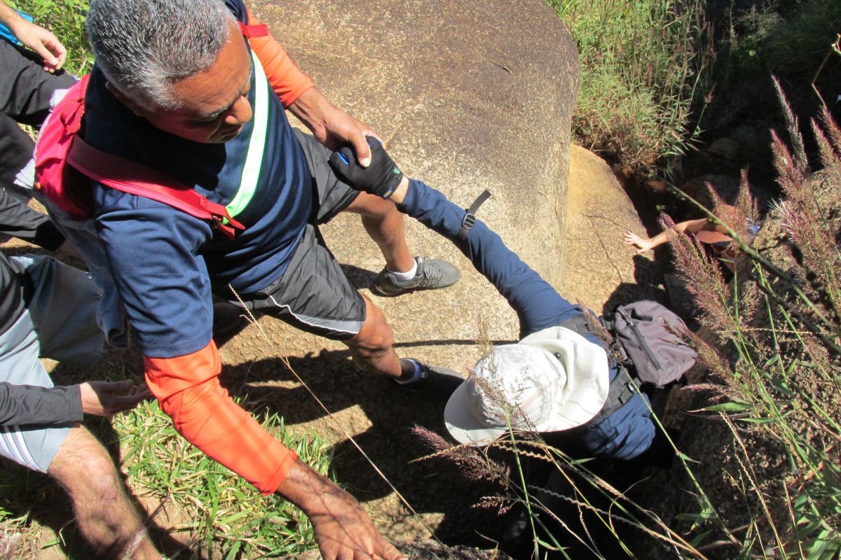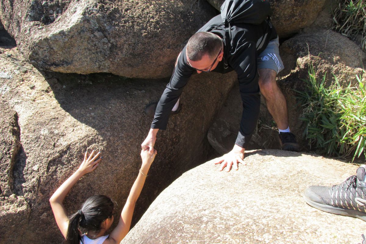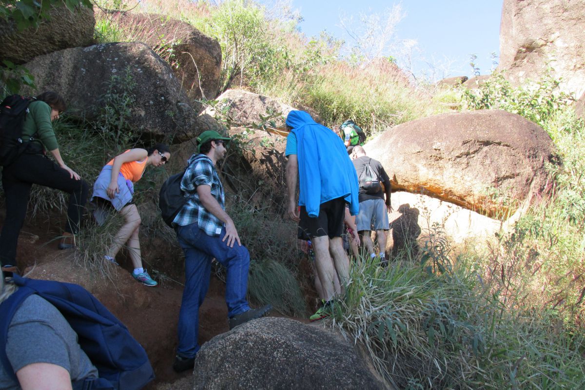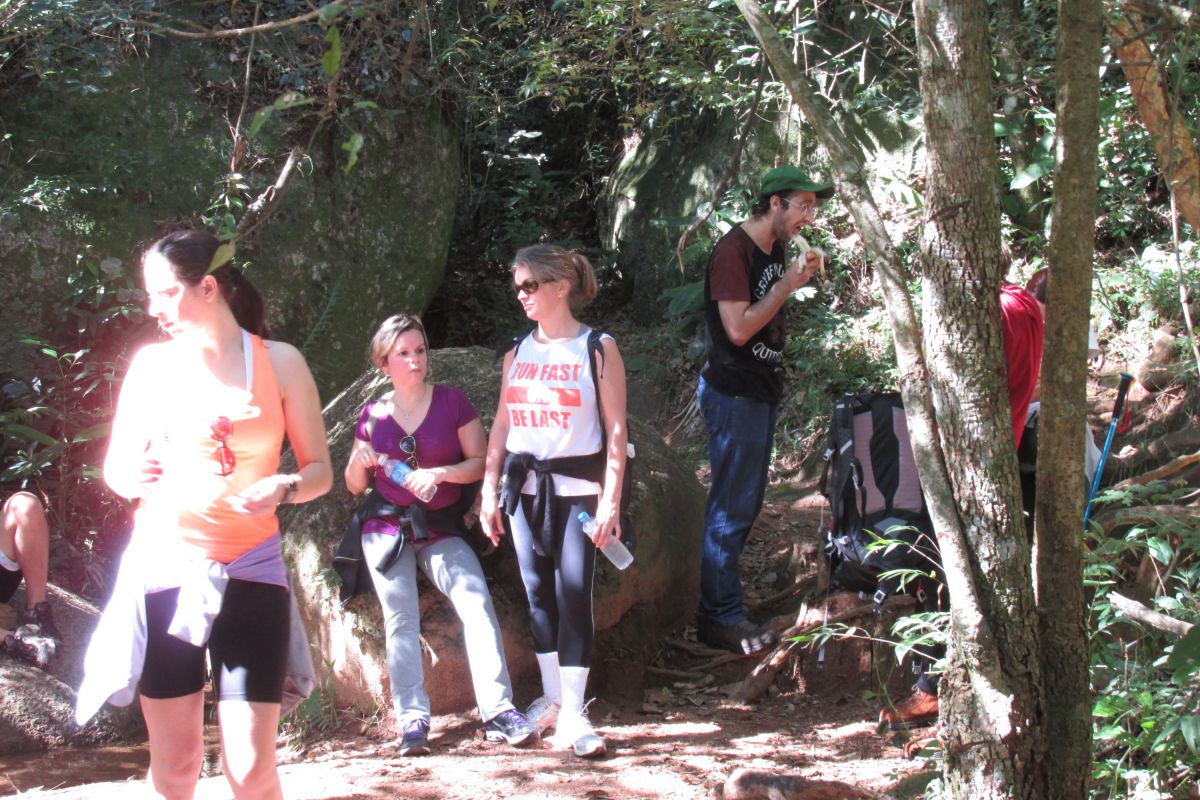 Juntamos os amigos e avançamos pela trilha Minha Deusa até atingir o cume da Pedra Grande em Atibaia