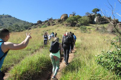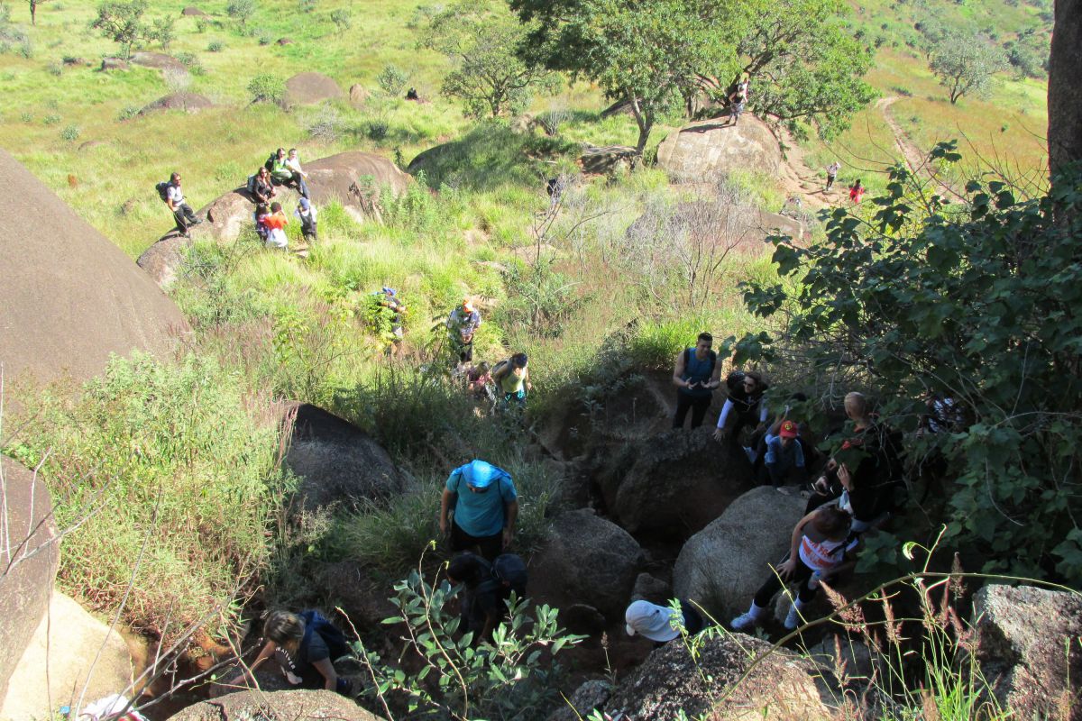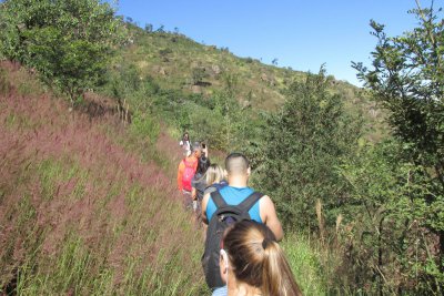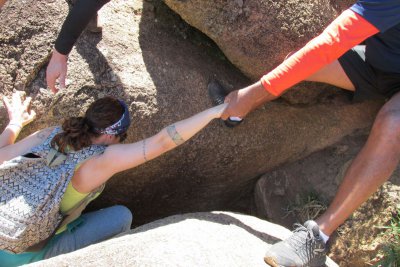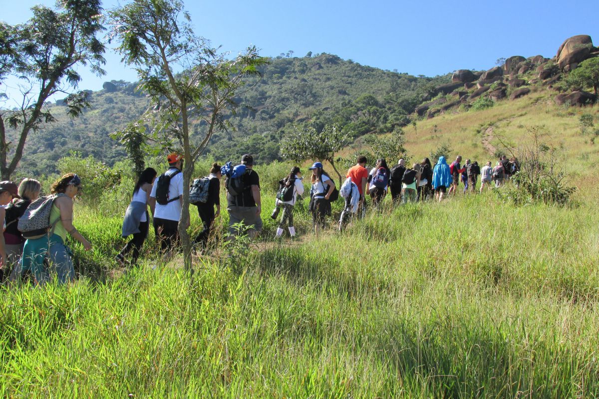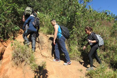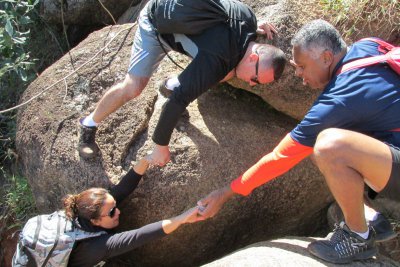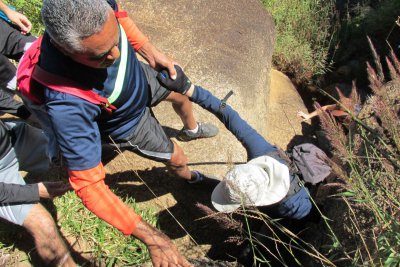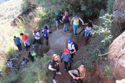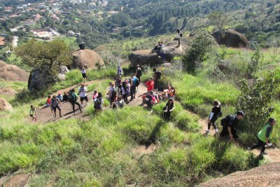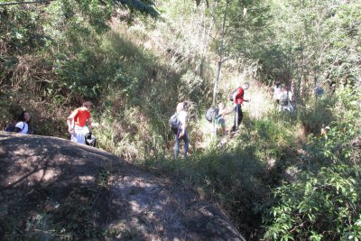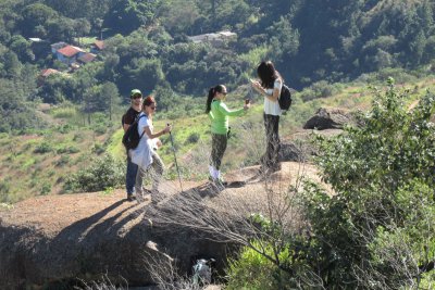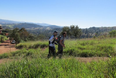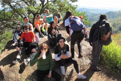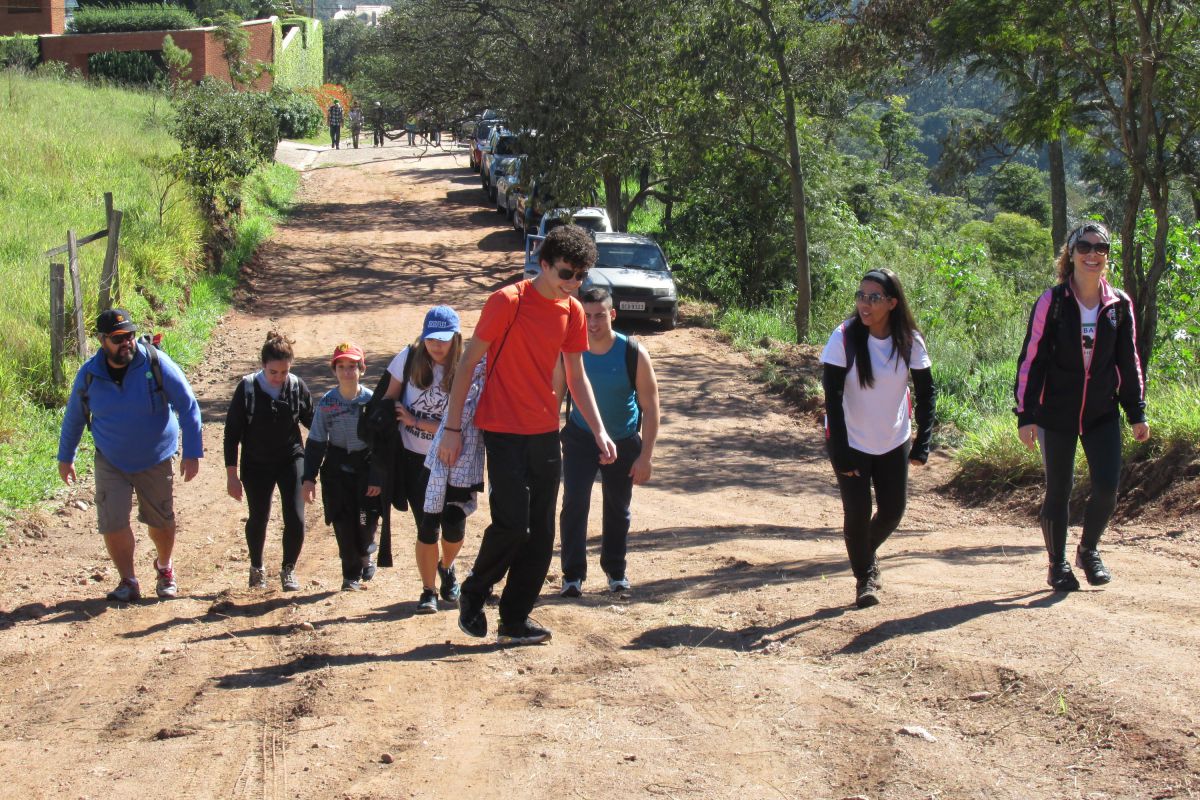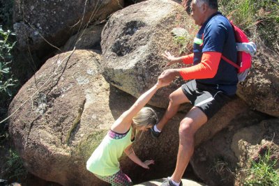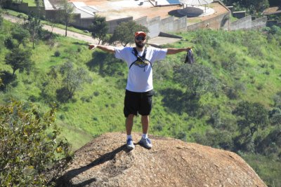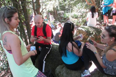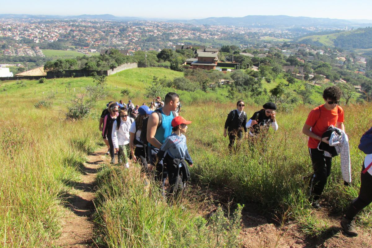 Juntamos os amigos e avançamos pela trilha Minha Deusa até atingir o cume da Pedra Grande em Atibaia