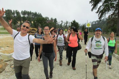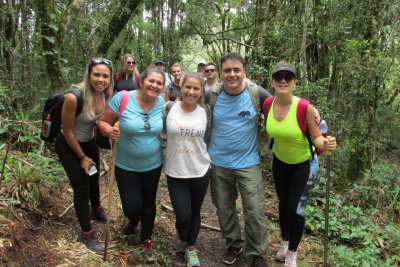 Juntamos os amigos e avançamos na trilha passando por paisagens exuberantes e uma cachoeira muito bonita, ate´sairmos no Parque do Itapeva