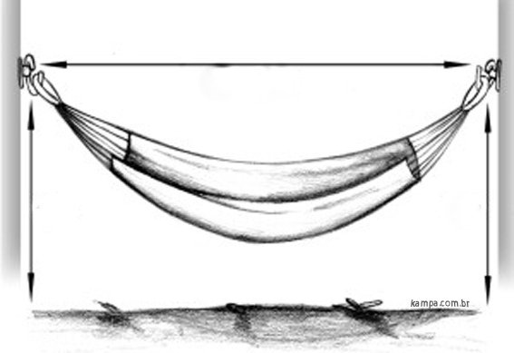 Foi depois deste puxão de orelha que descobri que a melhor forma de dormir em redes era na posição de 30 graus. Ao invés de dormir no mesmo sentido da rede (que é a primeira posição que vem à mente, com os pés em direção a um punho e a cabeça ao outro), tente dormir na diagonal, um ângulo de mais ou menos 30 graus, como mostra a figura abaixo: