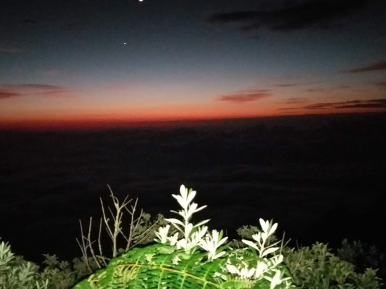 Por fim chegamos ao destino por volta das 4 hrs da manhã e iniciamos então a subida até a Pedra da Macela. Estavamos em um grupo de 18 aventureiros, mesmo com algumas paradas durante a subida, conseguimos chegar até o cume em 46 min cravados. daí por diante foi só apreciar o lindo espetáculo e ver o Rei Sol nascendo.