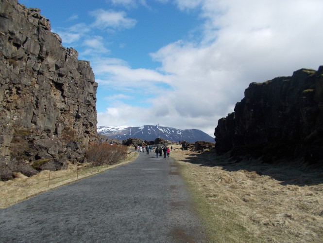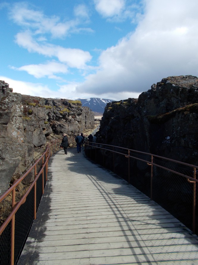 I went on a day trip to Þingvellir National Park where I walked the divide between the Eurasian and North-American plate boundaries that are slowly pulling Iceland apart (approximately 2cm a year)!