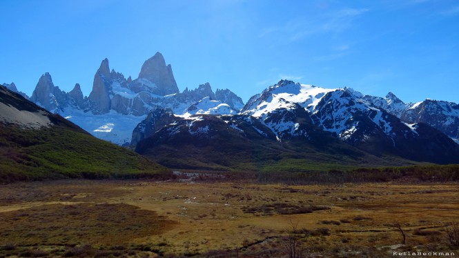 A paisagem que se apresentava aos nossos olhos era estupenda. Logo no início avistamos o Fitz Roy a nossa frente e, ao lado dele, uma outra linda montanha, em forma de S, chamada Cerro Solo. Ambos seguiram a nossa frente por boa parte dessa trilha, e em certo momento passamos a avistar o Glaciar do Cerro Torre, entre os dois.