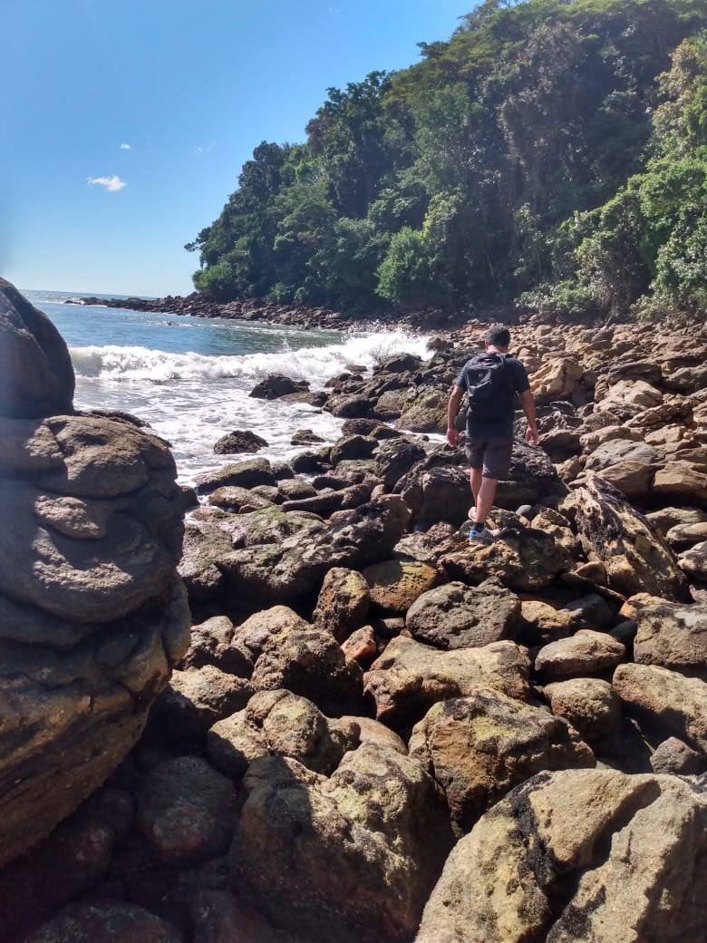 HikingPercurso feito pelas rochas nessas praias trecho de 2,5km reunindo tecnicas de escalaminhadas e montanhismo o que exige muito esforço fisico, concentração e cuidados! O costão dessas praias que são acessadas somente por trilhas ou barcos é de nivel dificil com rochas atingindo até 10 metros.