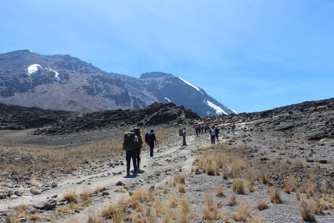 Saímos cedo em direção ao Barafu Camp, à 4600mts, por um caminho acima do limite da vegetação.
