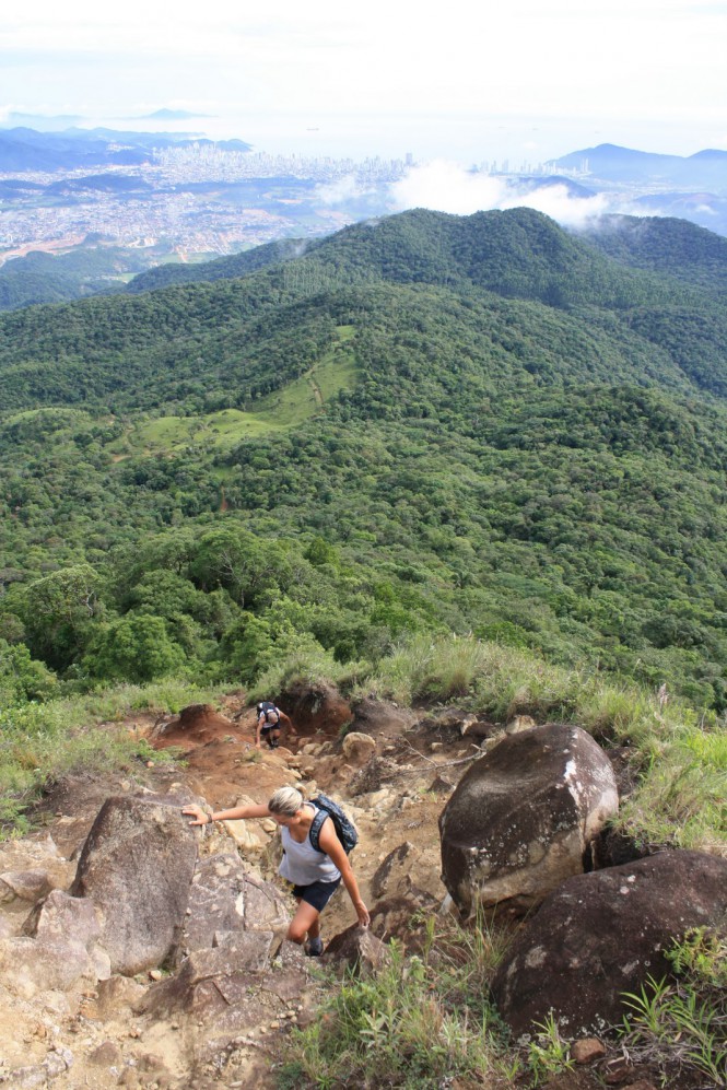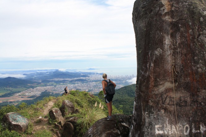 É uma subida bem puxada, mas não muito difícil. Demoramos 1 hora para subir e ao chegar ao cume uma vista deslumbrante apareceu diante de meus olhos. Podíamos ver todo litoral de Balneário Camboriu e Itapema, não é a toa que o pico da Pedra era utilizado como base de observação do Exercito durante a II Guerra Mundial.