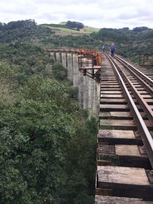 Travessia realizada entre as cidades de Guaporé e Muçum/RS sobre a estrada de ferro, passando por diversos túneis e viadutos.