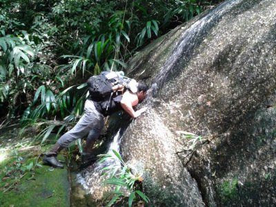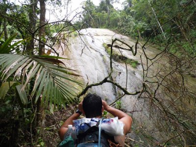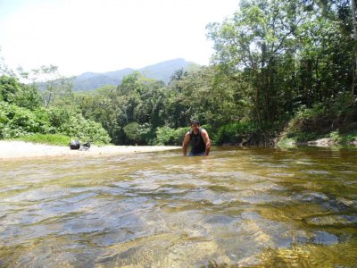 Travessia de aproximadamente 14 kms varando mato pelas serra do Caetê e corredeiras do Jaguareguava.