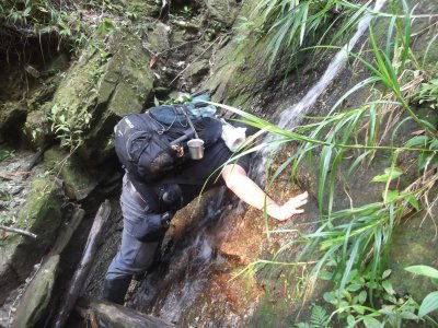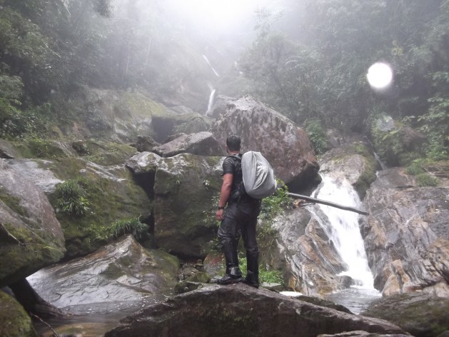 Travessia em terreno super acidentado não trilhado com diversos penhascos e cachoeiras.
